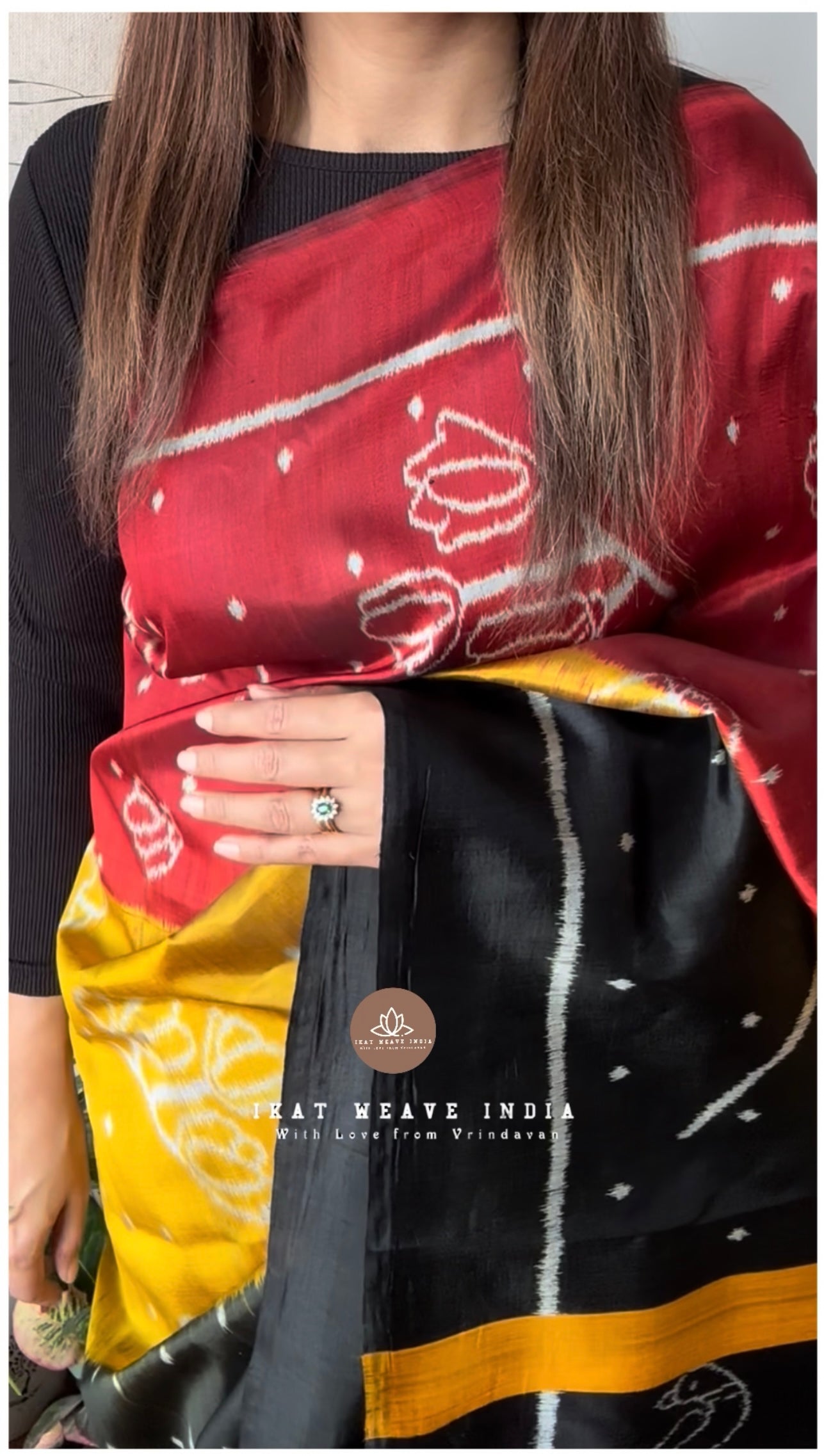 Super gorgeous & Stunning Ikat saree with tribal inspired design from Odisha.Luxurious Pure silk sarees known for its intricate designs and exceptional craftsmanship that makes the sarees a symbol of opulence,Grace & Luxury.