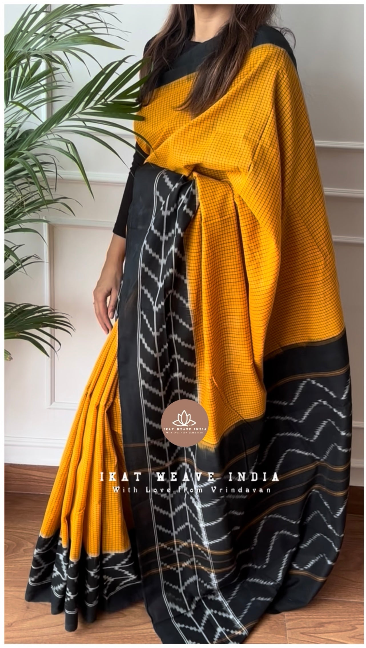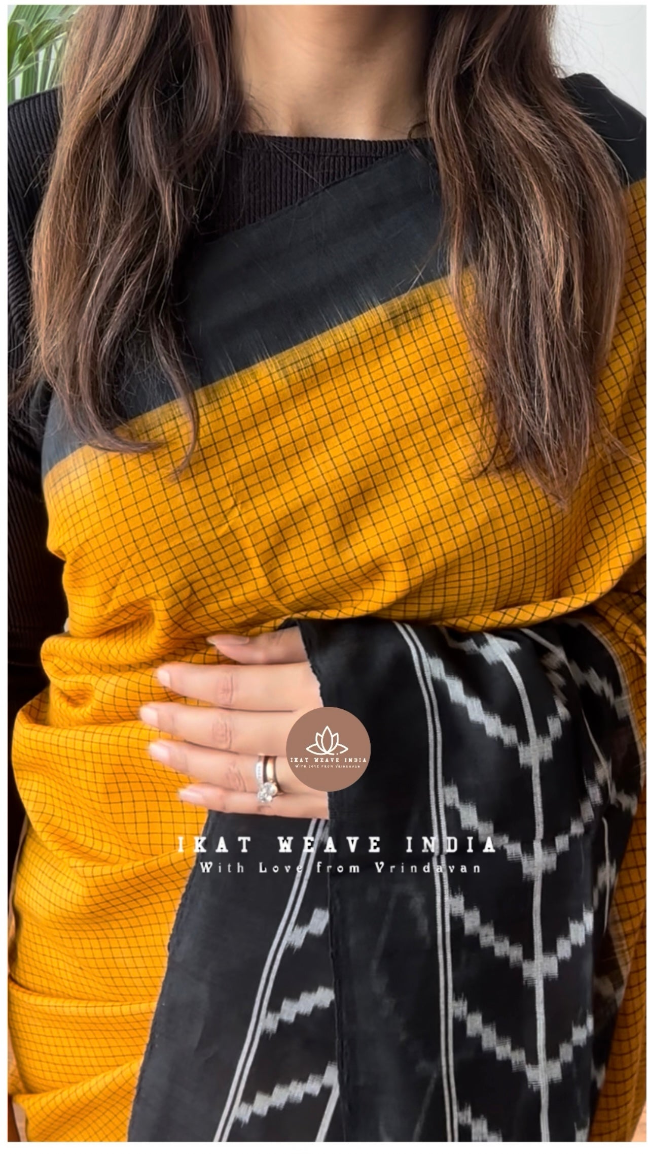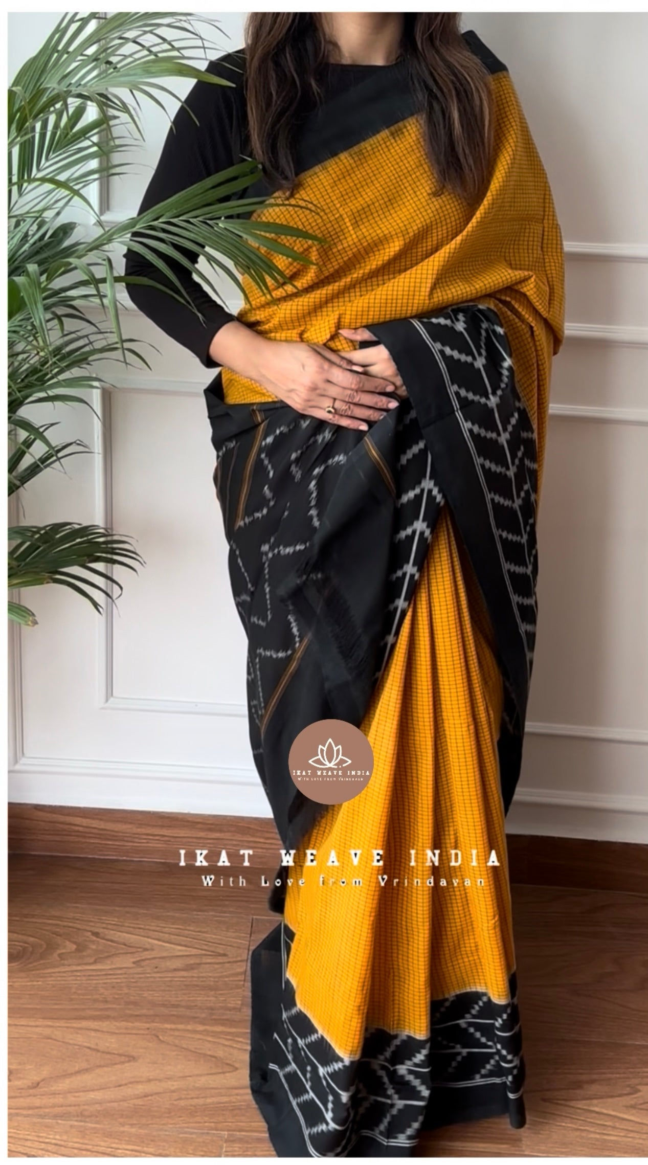 Exquisite handwoven ikat pure cotton saree, intricate design all over body & beautiful color combination making the saree absolutely stunning. Saree comes with a running blouse piece.