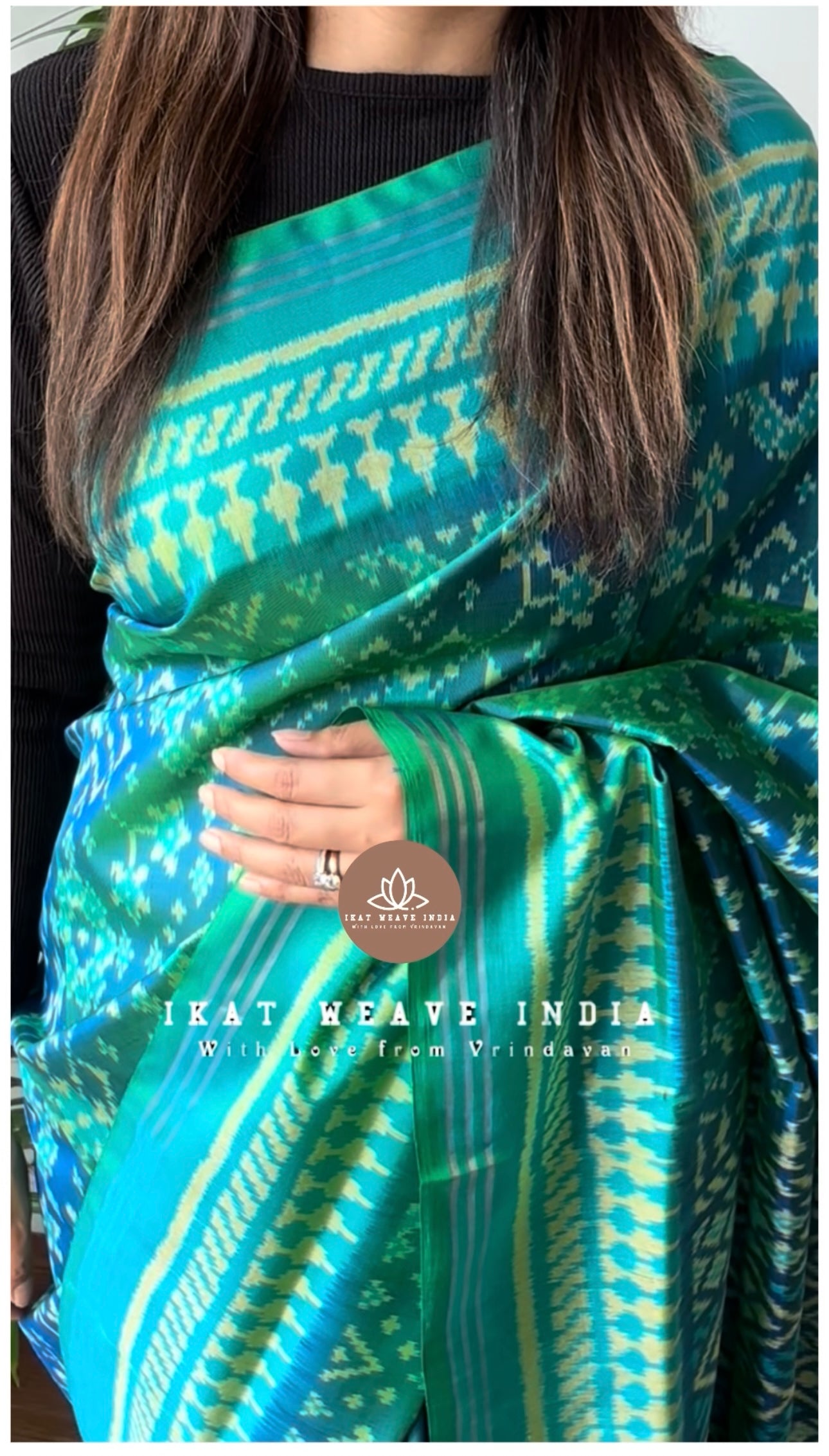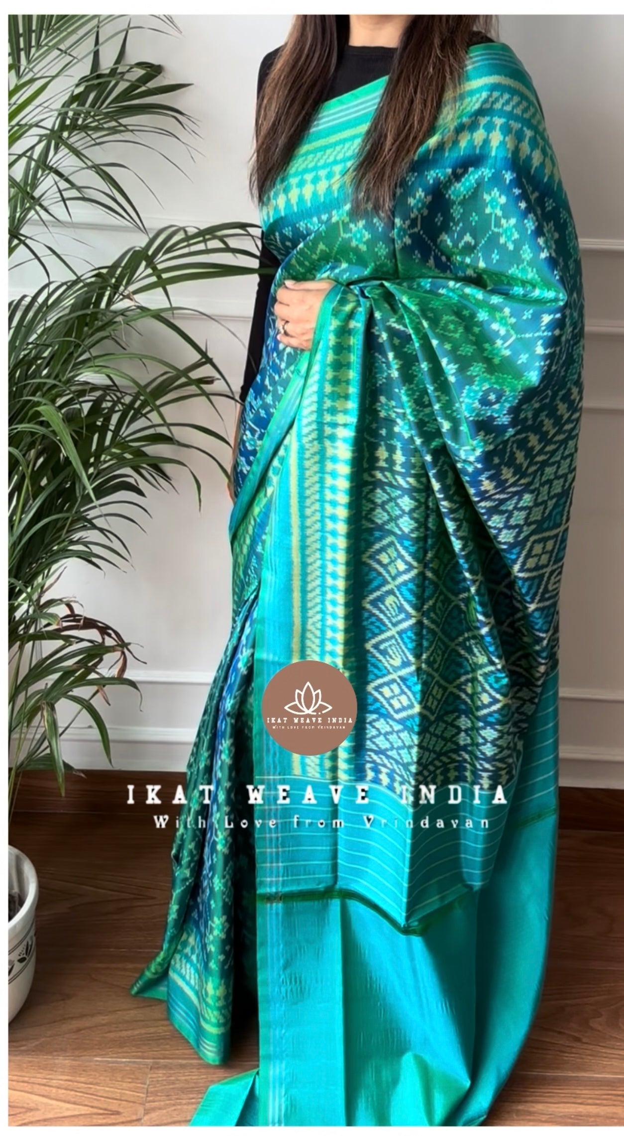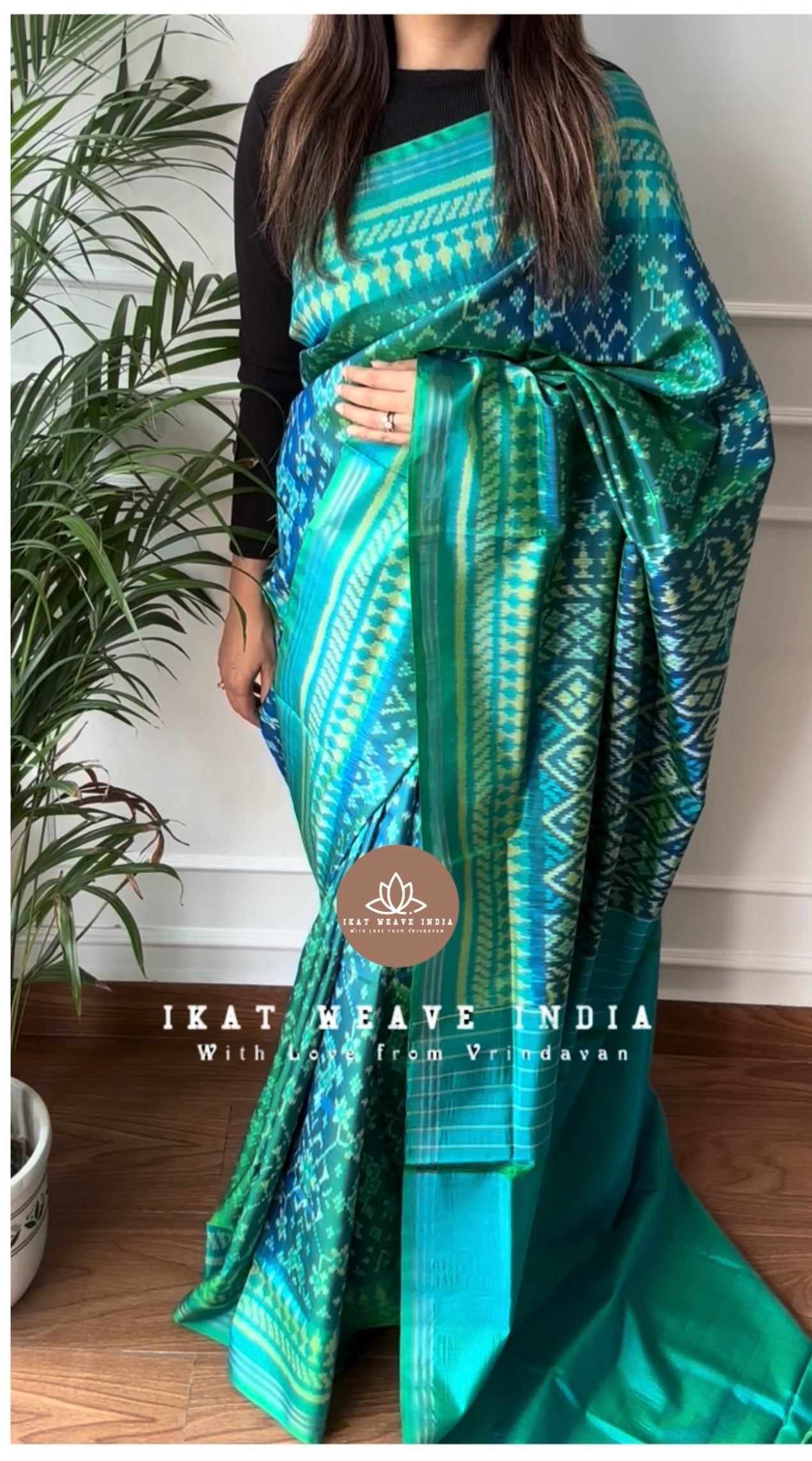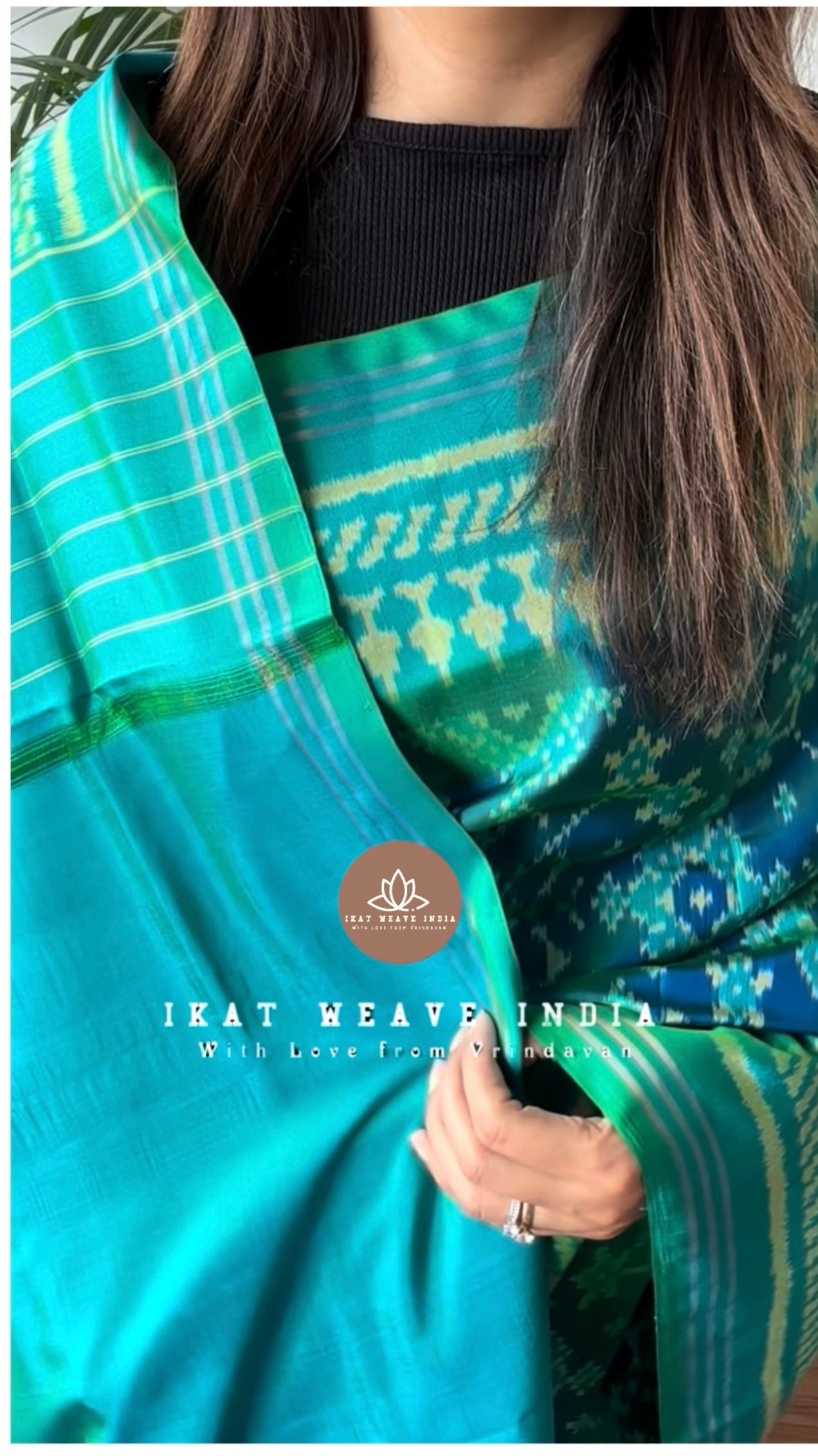 Exquisite gorgeous handwoven handloom pure silk Patola saree from Gujarat. A symbol of grace,Luxury and tradition.Saree comes with a running blouse piece.