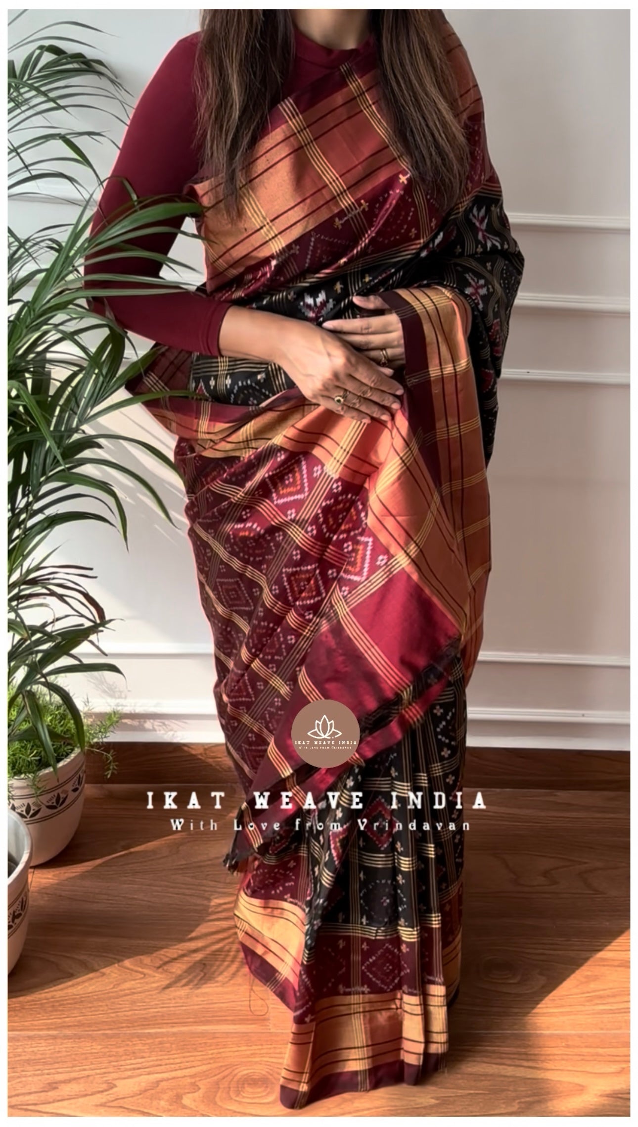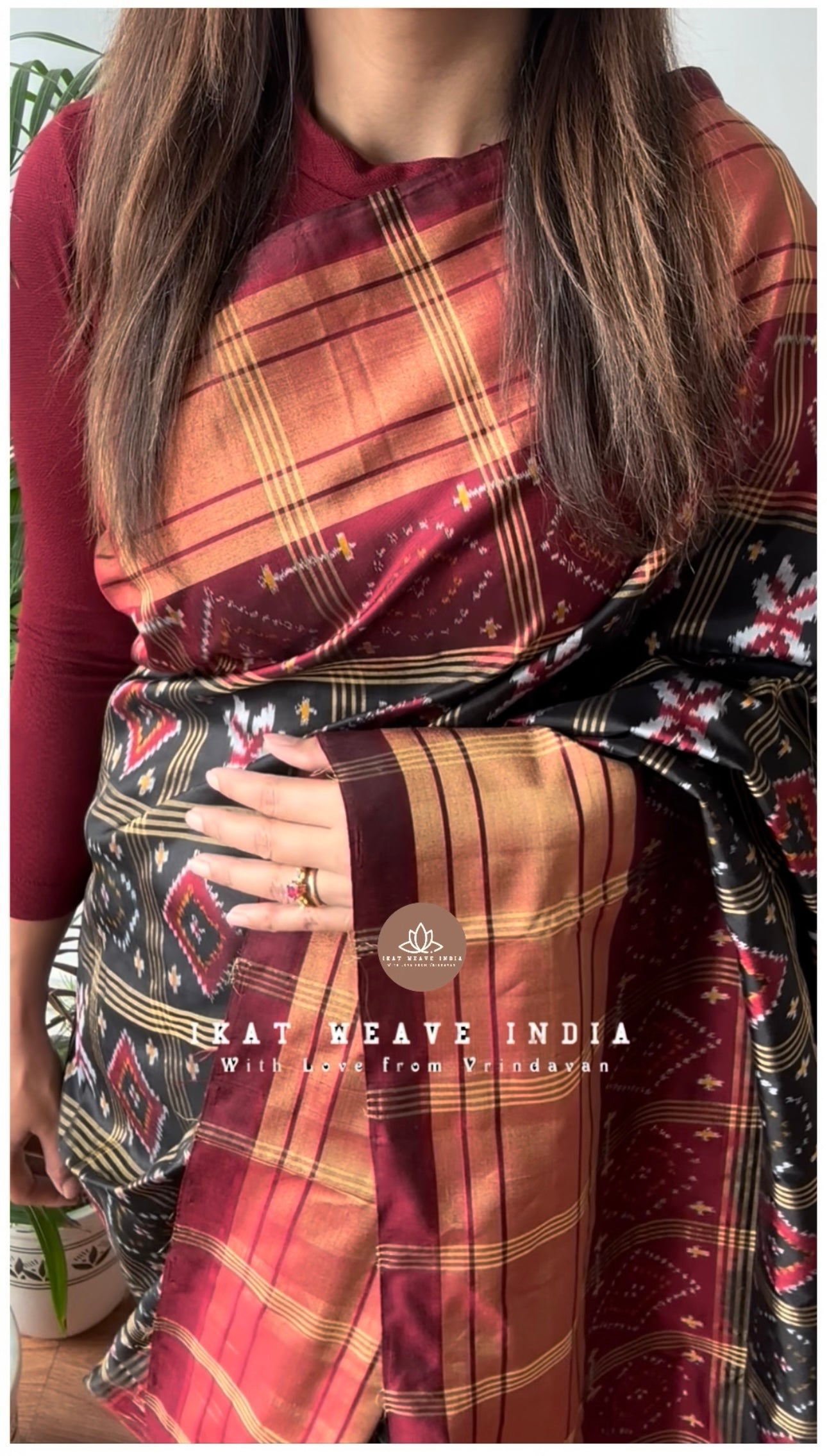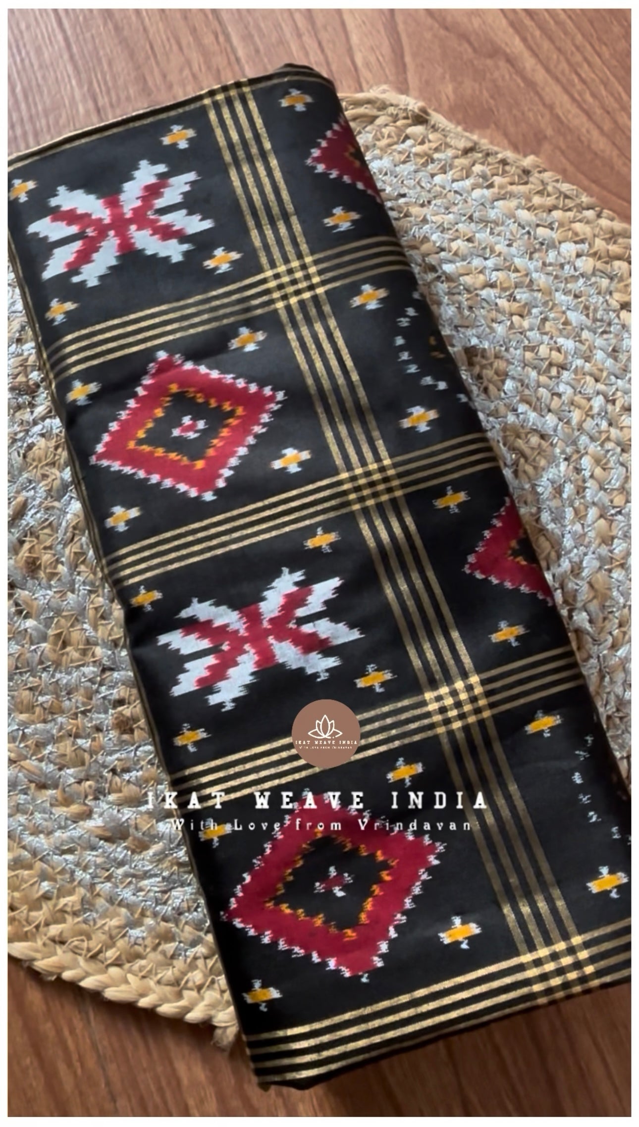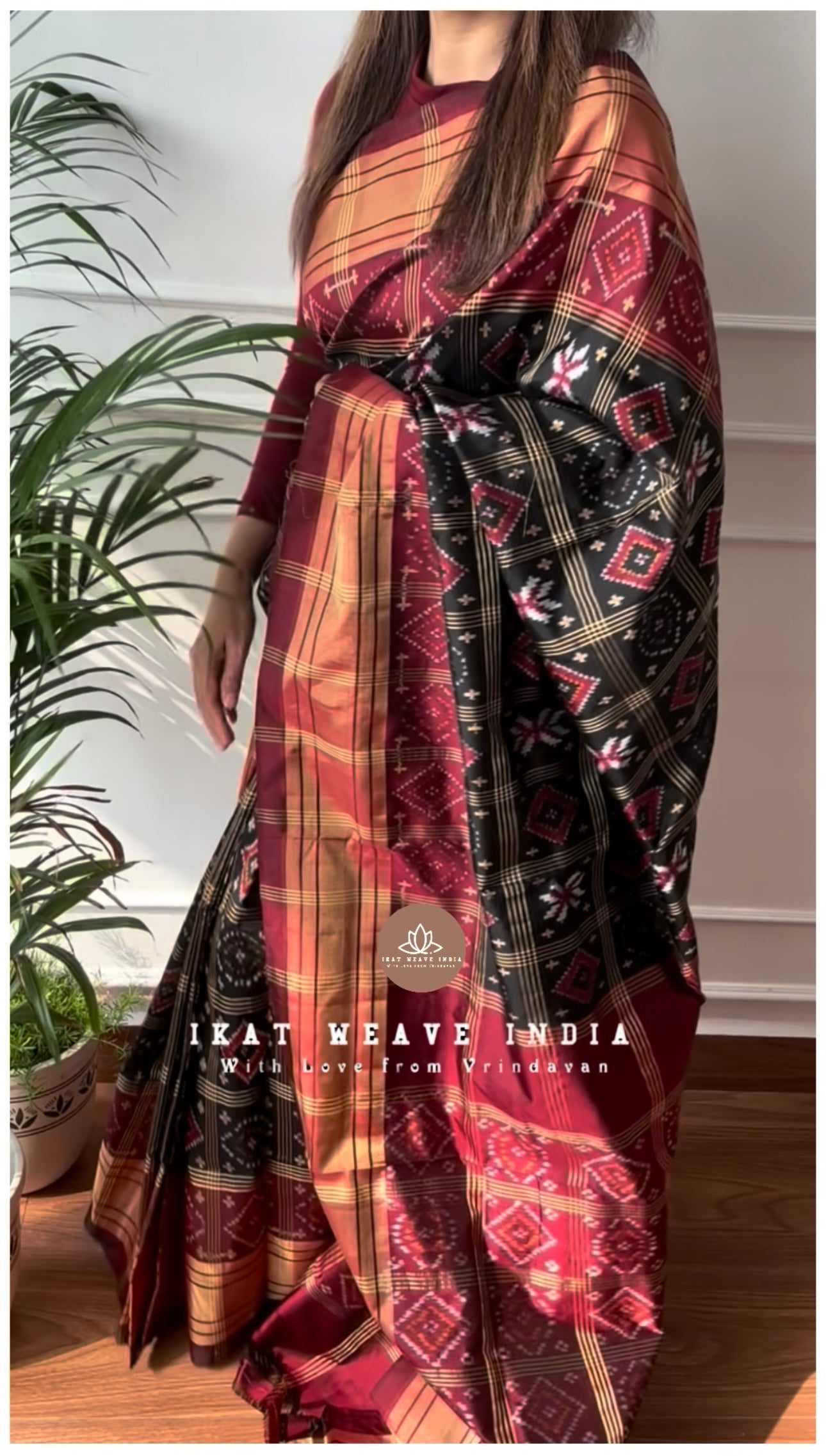Exquisite handwoven double ikat pure silk saree, intricate Telia Rumal design all over body and pallu making the saree absolutely stunning. Saree comes with a running blouse piece.