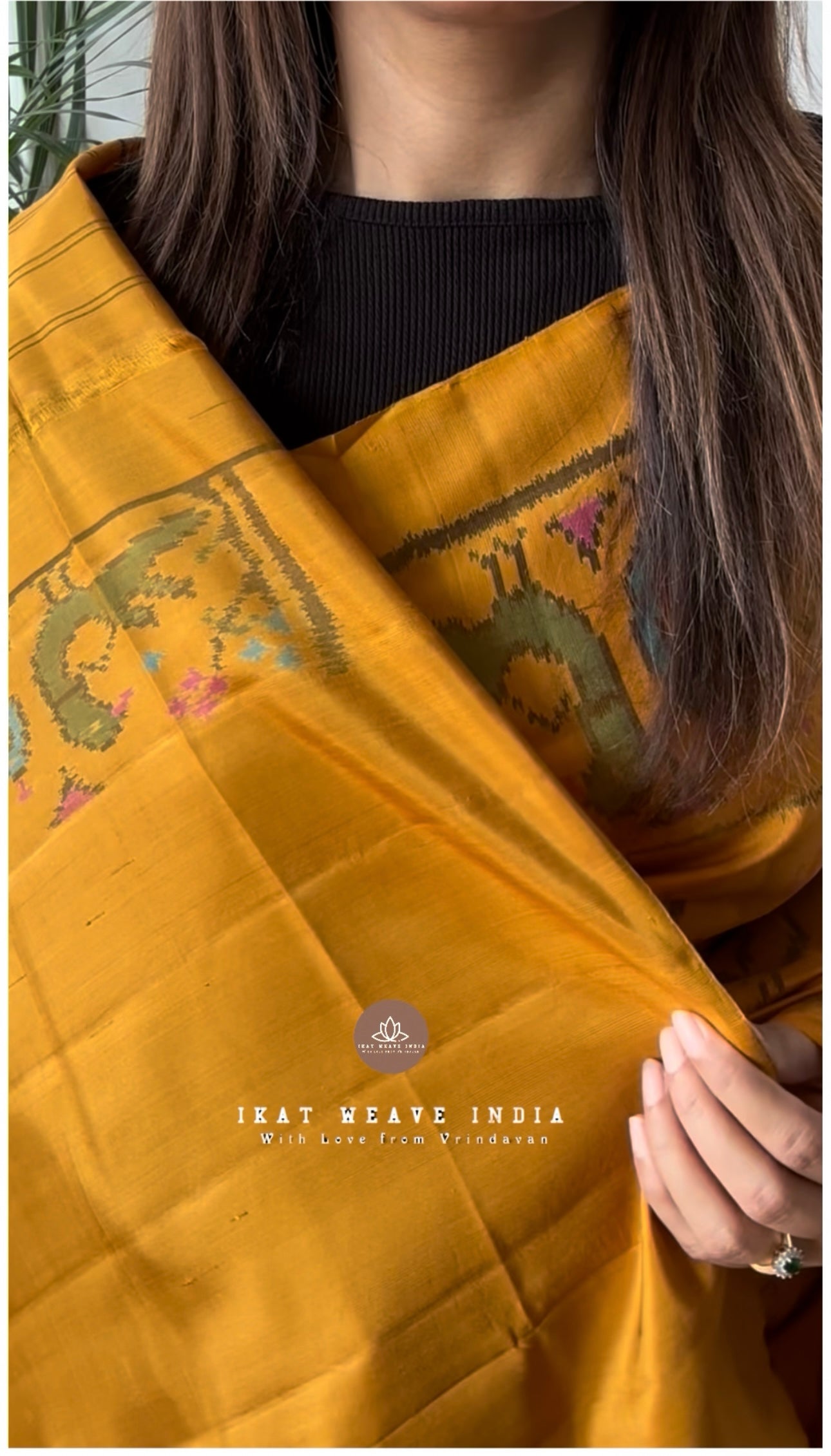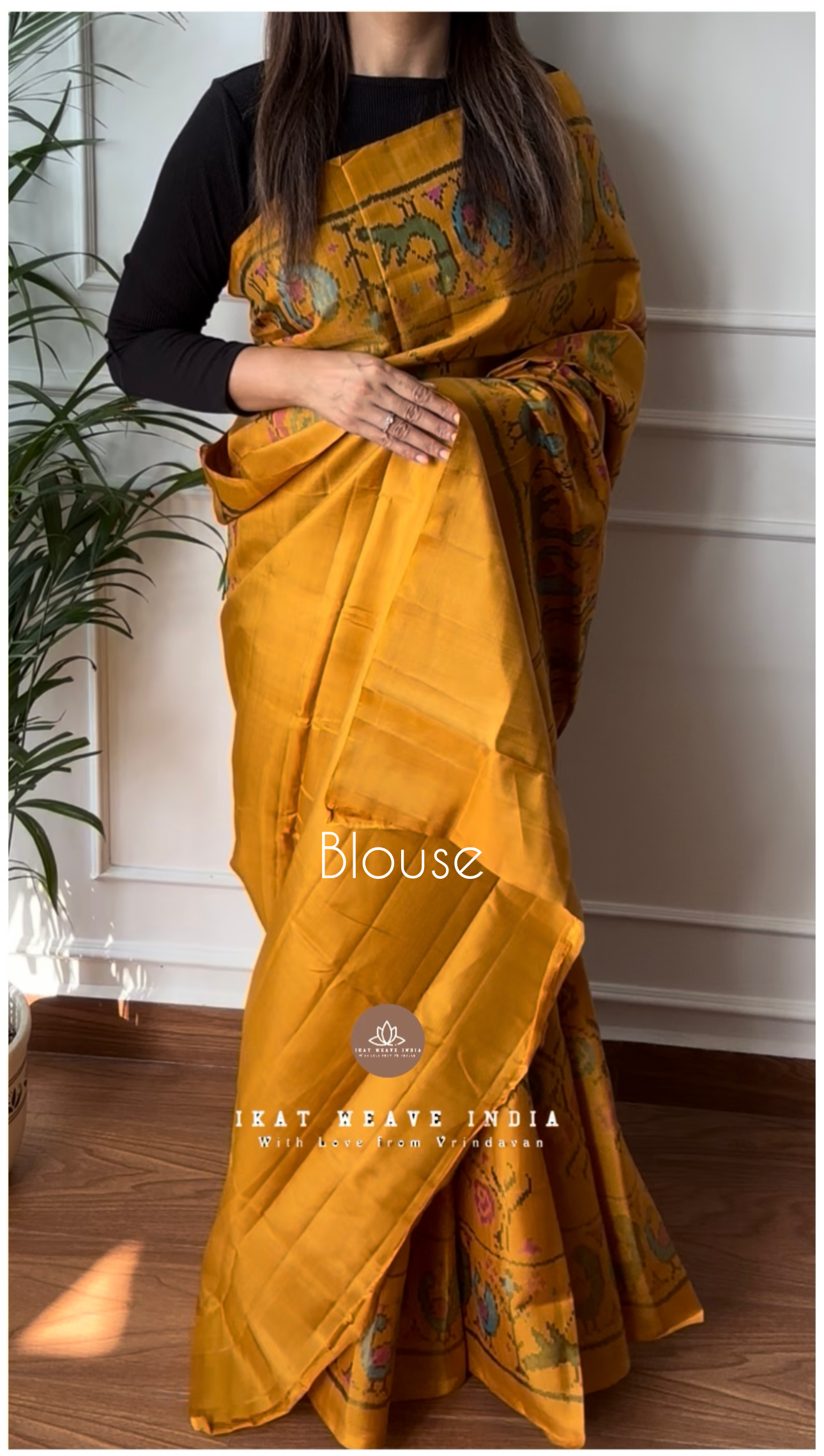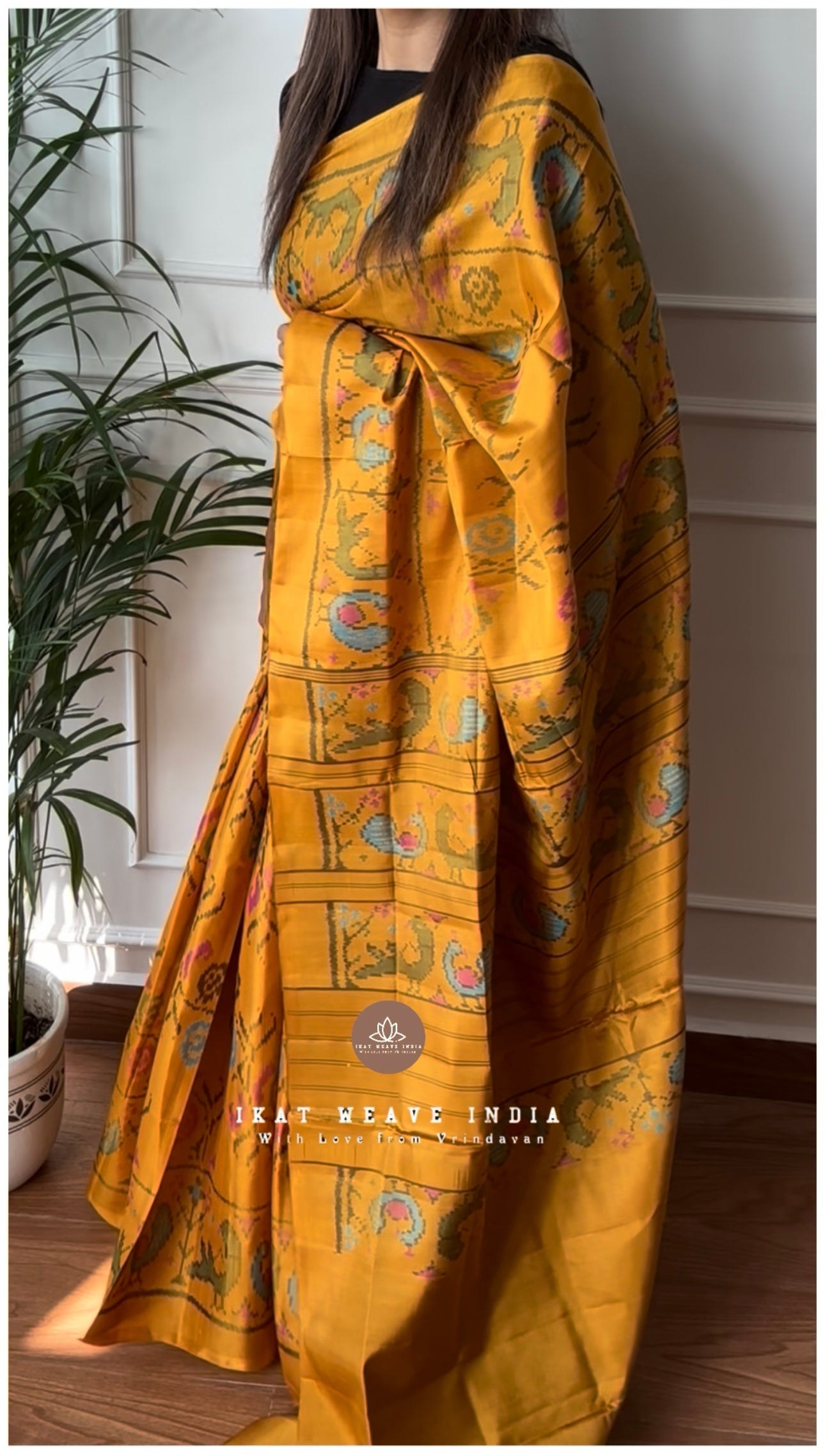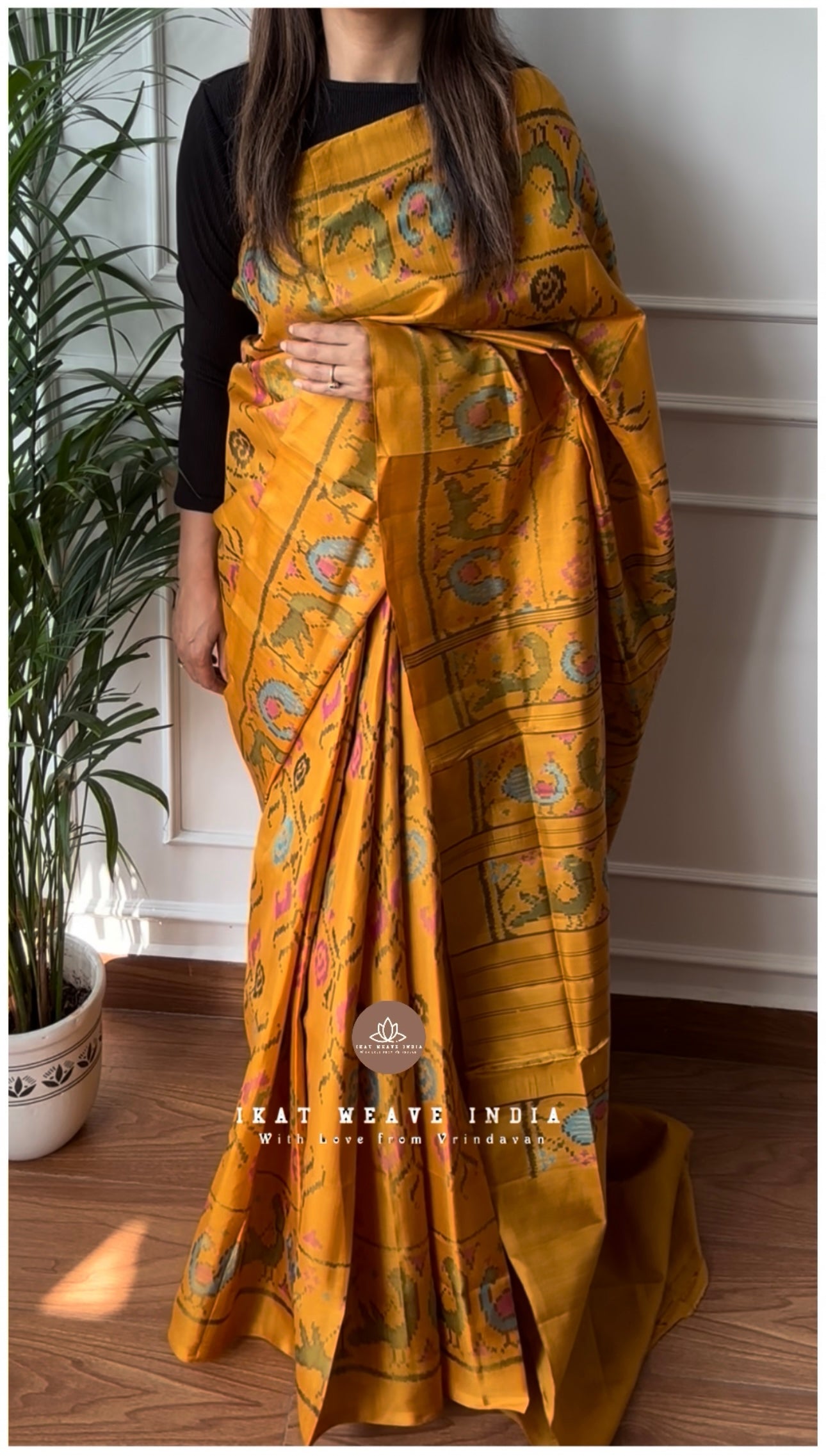 Exclusive & gorgeous handwoven handloom pure silk Patola saree from Gujarat. A symbol of grace,Luxury and tradition.Saree comes with a running blouse piece.