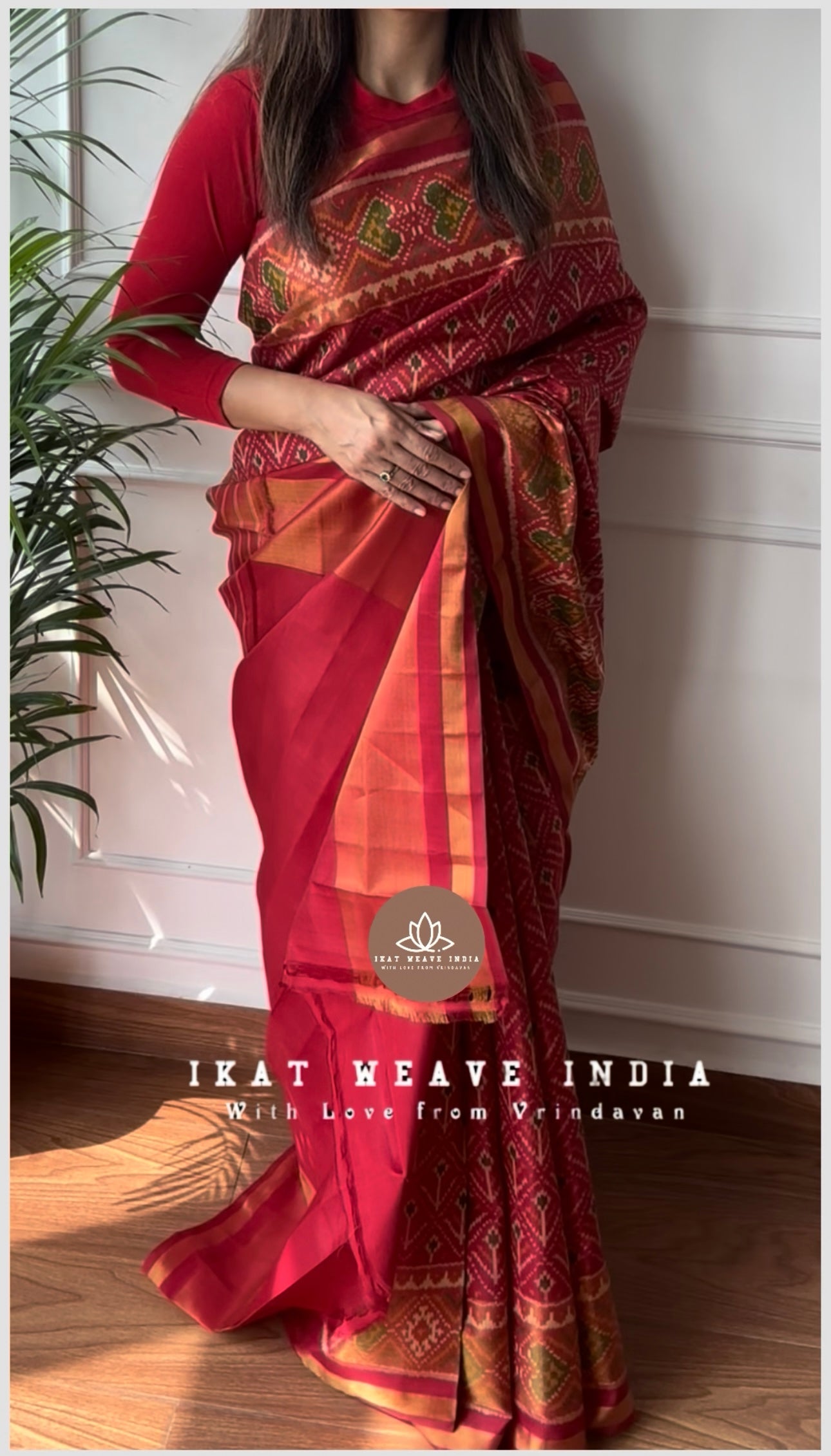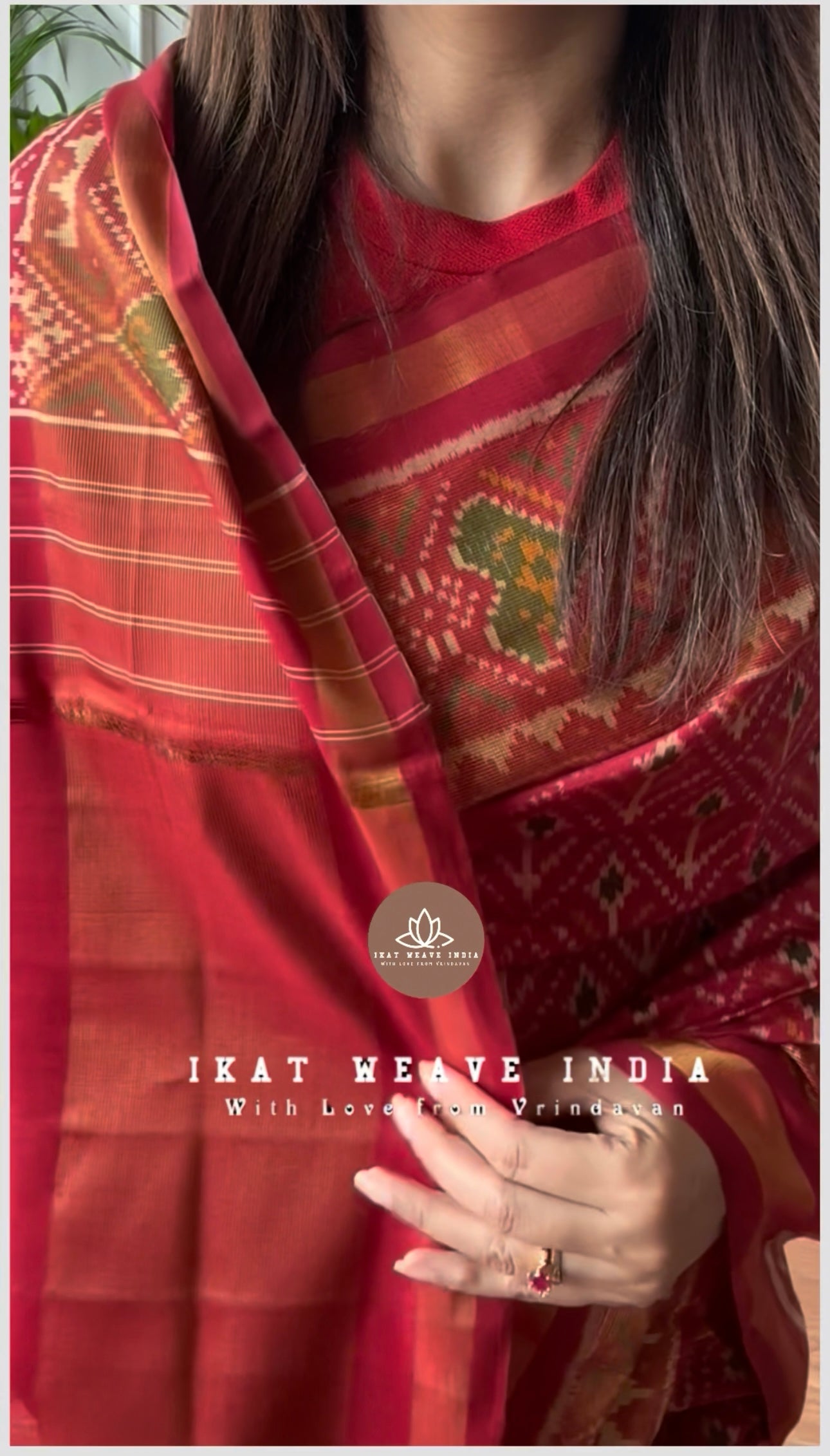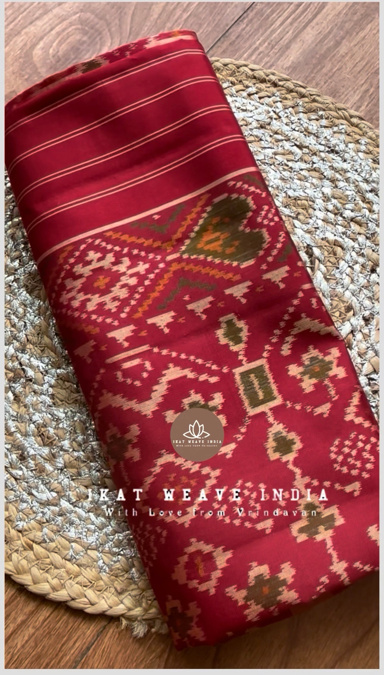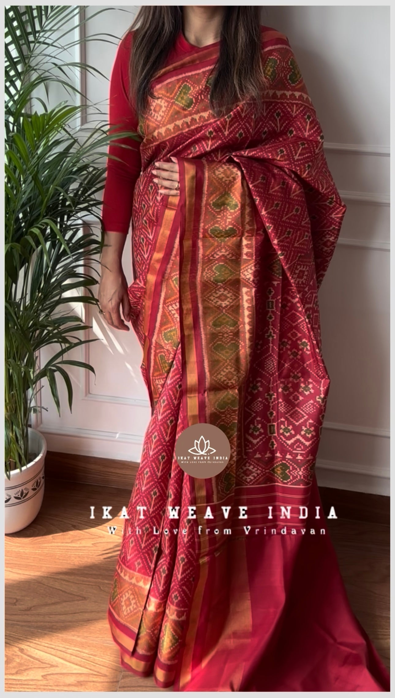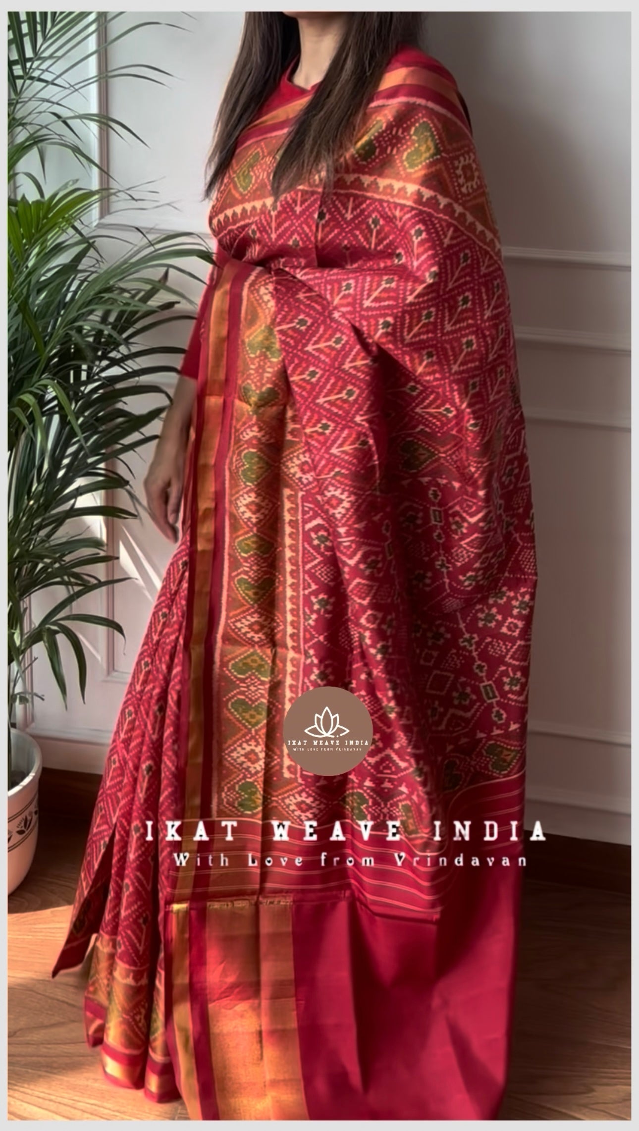 Exclusive & gorgeous handwoven handloom pure silk Patola saree from Gujarat. A symbol of grace,Luxury and tradition.Saree comes with a running blouse piece.