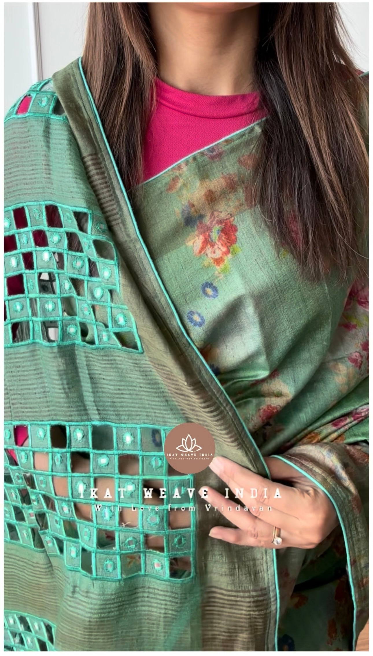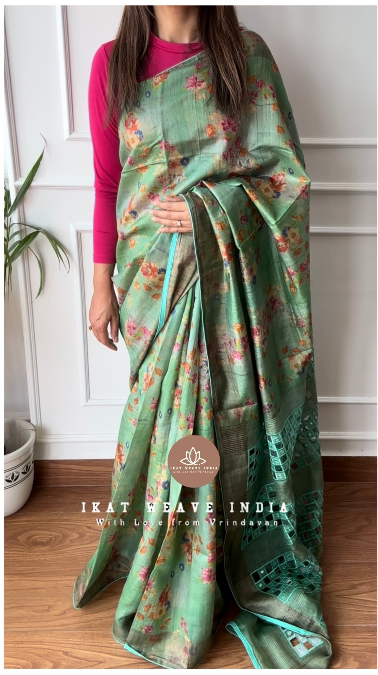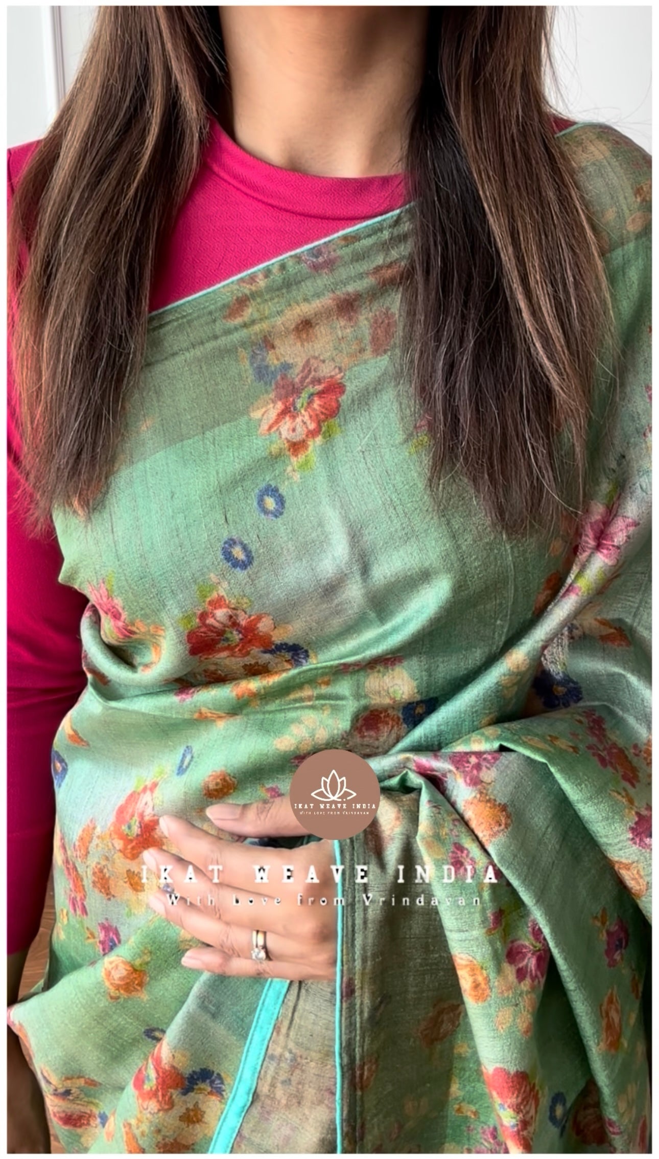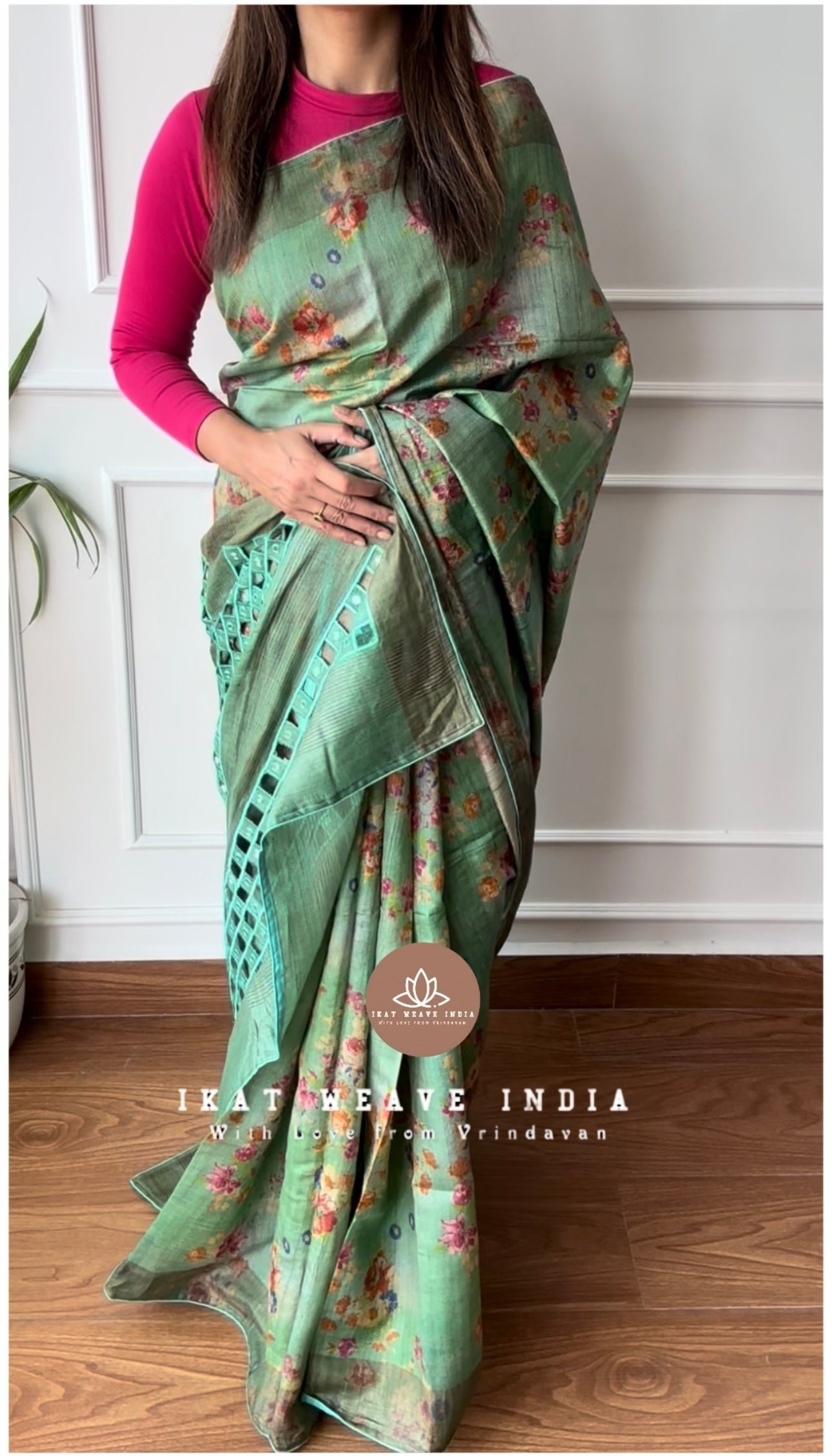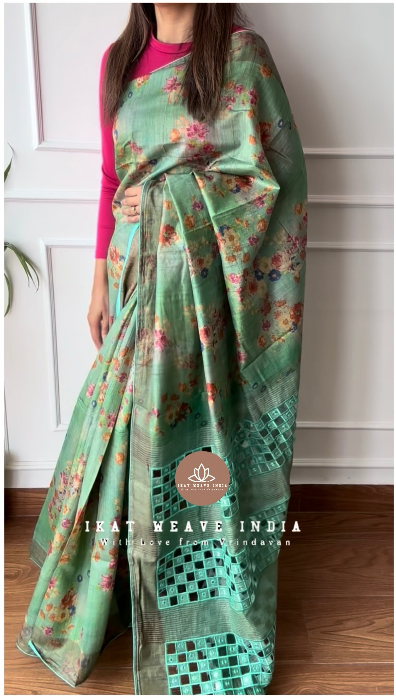 Handwoven & Handcrafted Tussar silk saree,beautiful printed body & cutwork embroidered pallu with subtle color combinations making the saree absolutely gorgeous & perfect to adorn & shine .