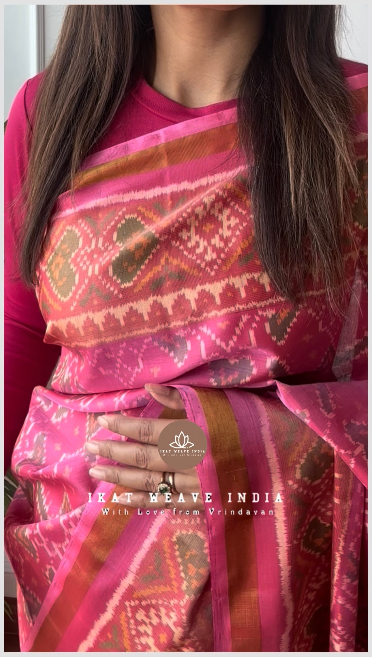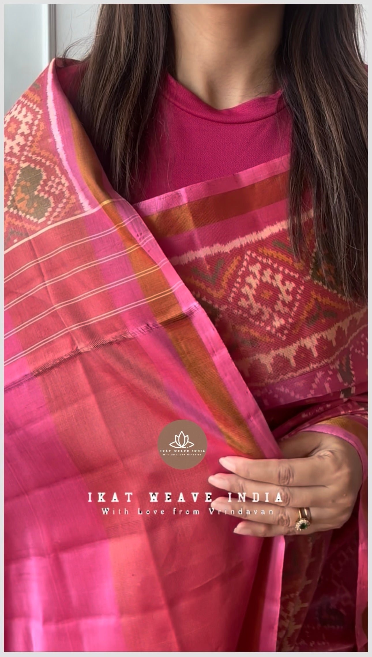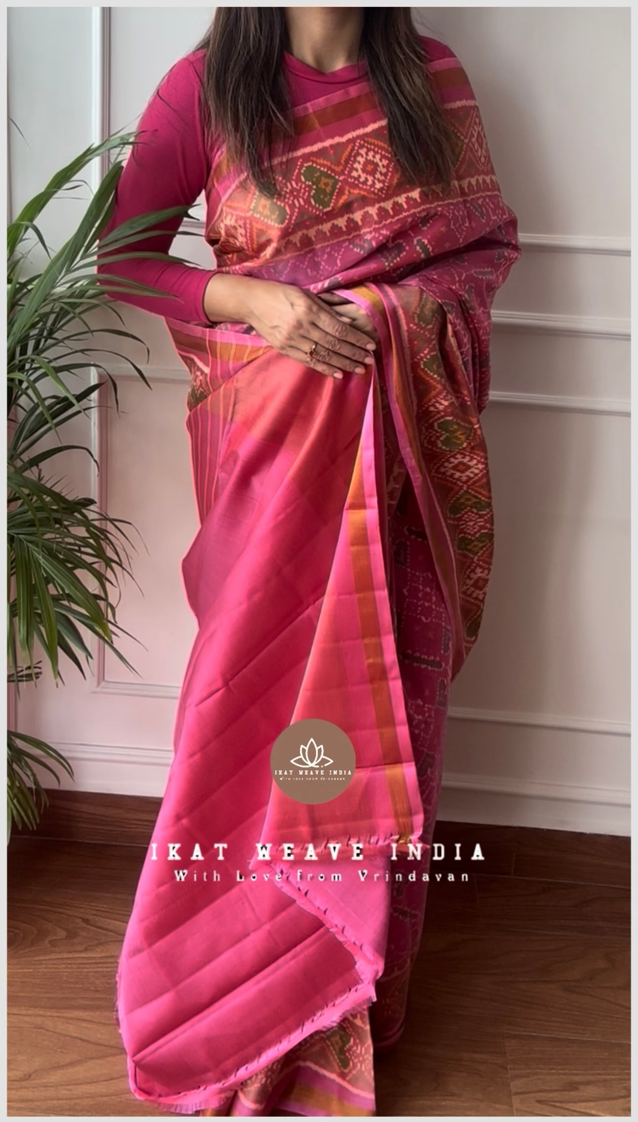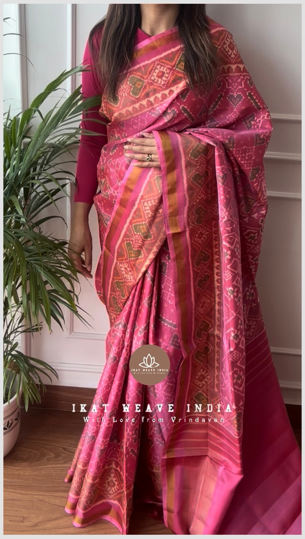 Exquisite gorgeous handwoven handloom pure silk Patola saree from Gujarat. A symbol of grace,Luxury and tradition.Saree comes with a running blouse piece.