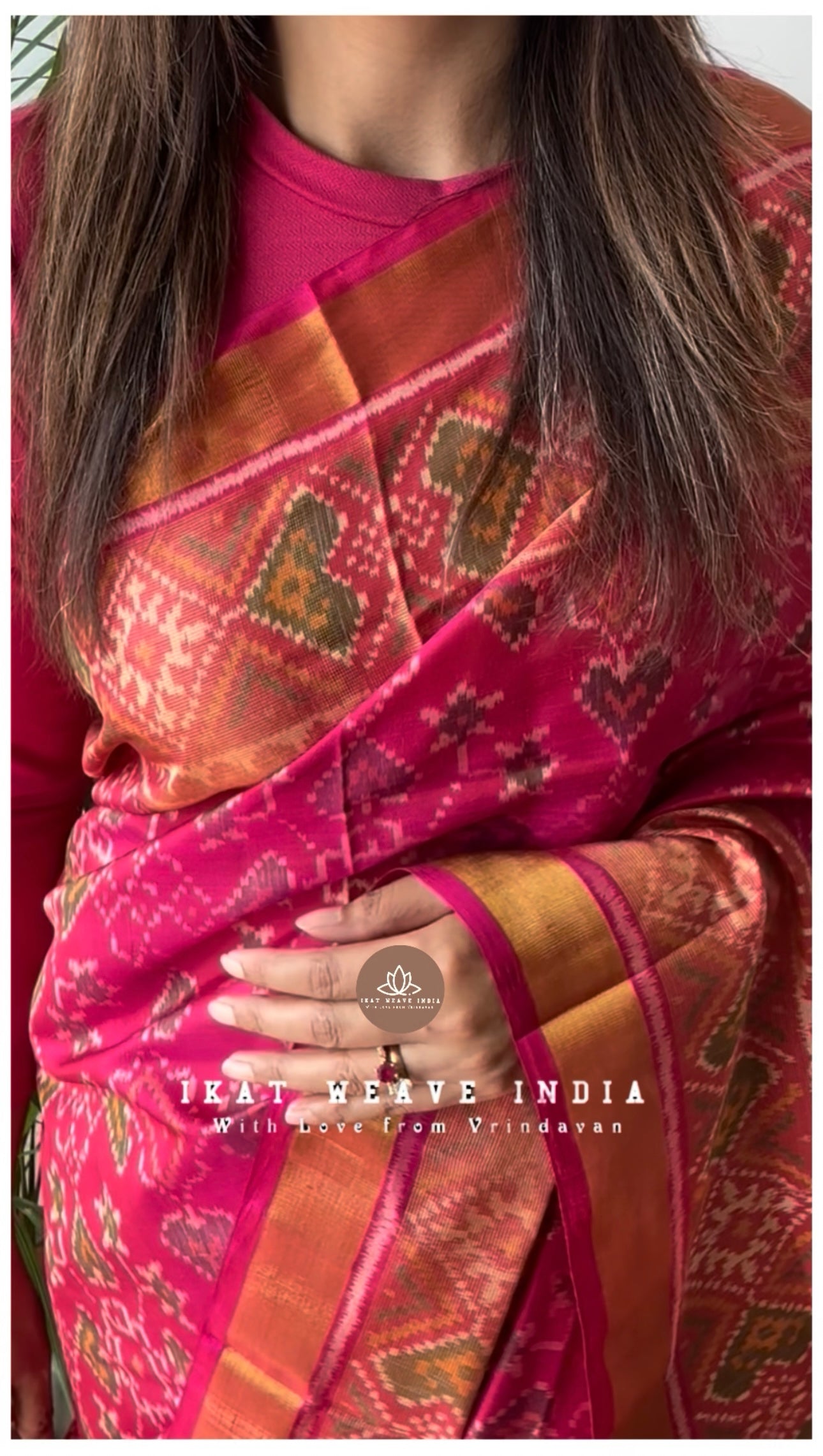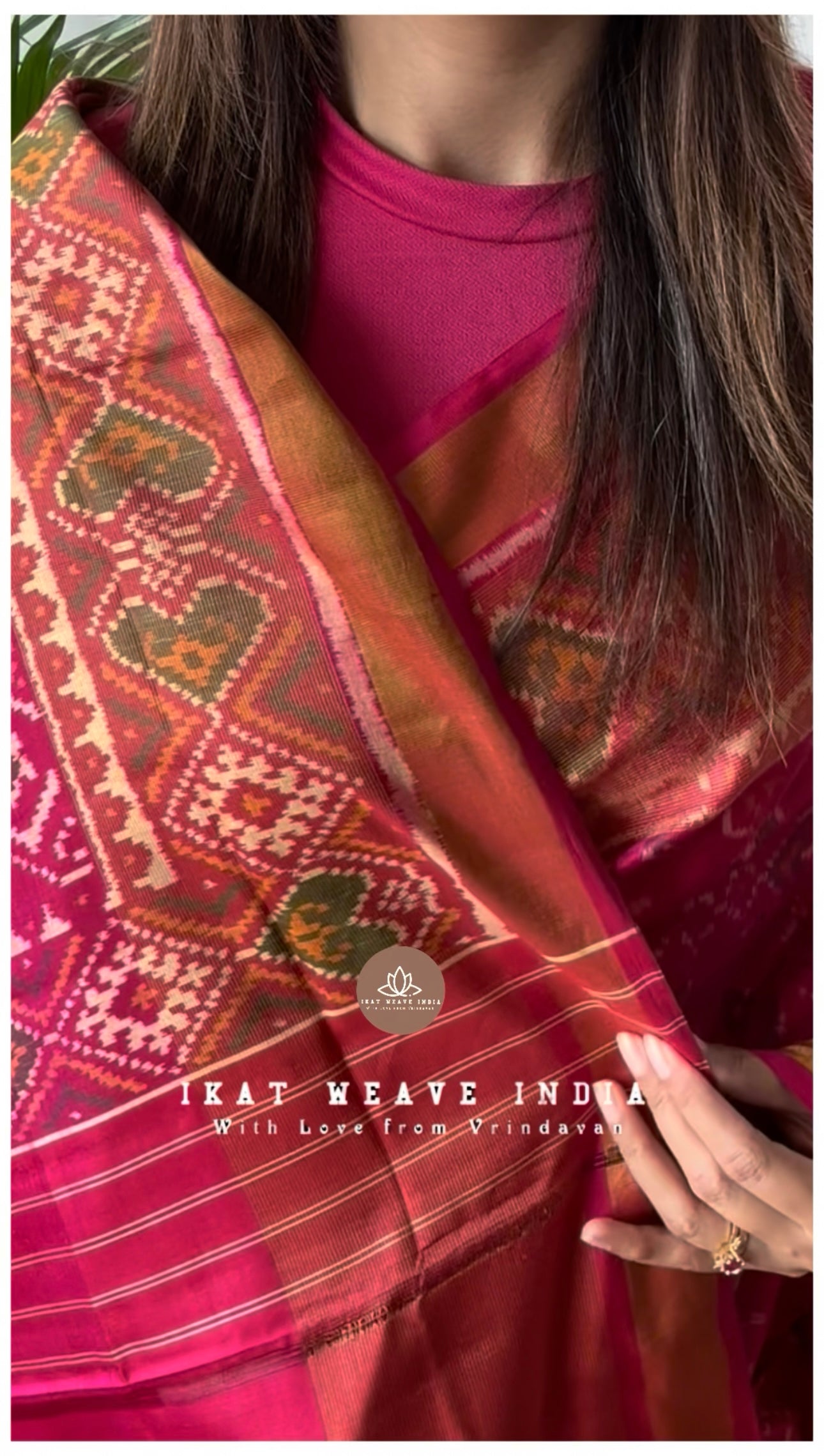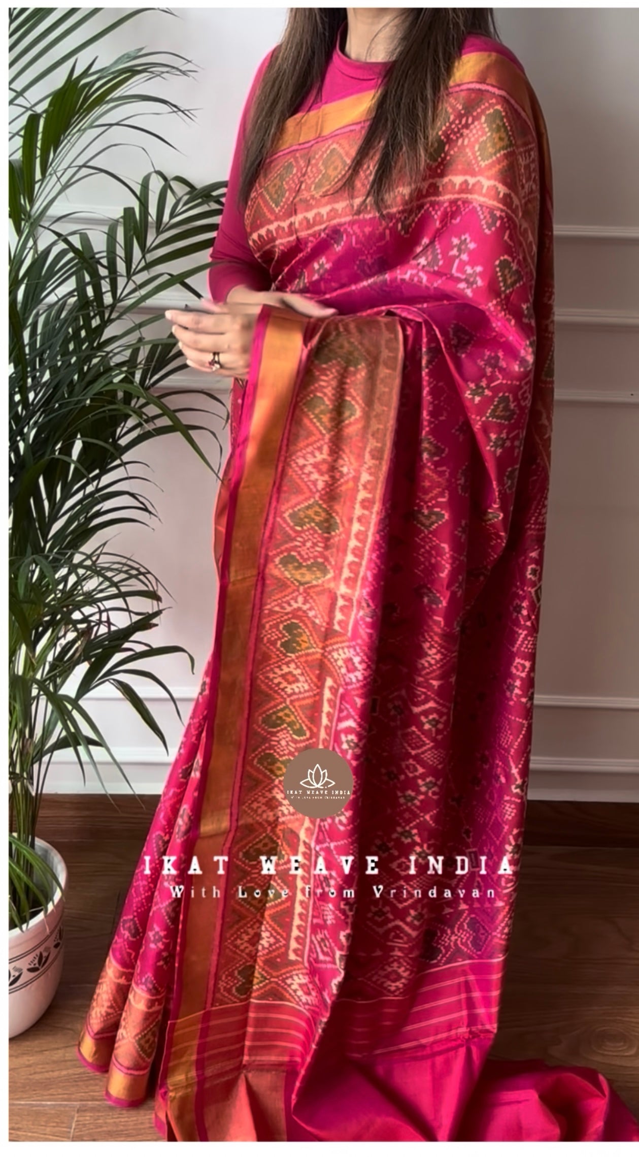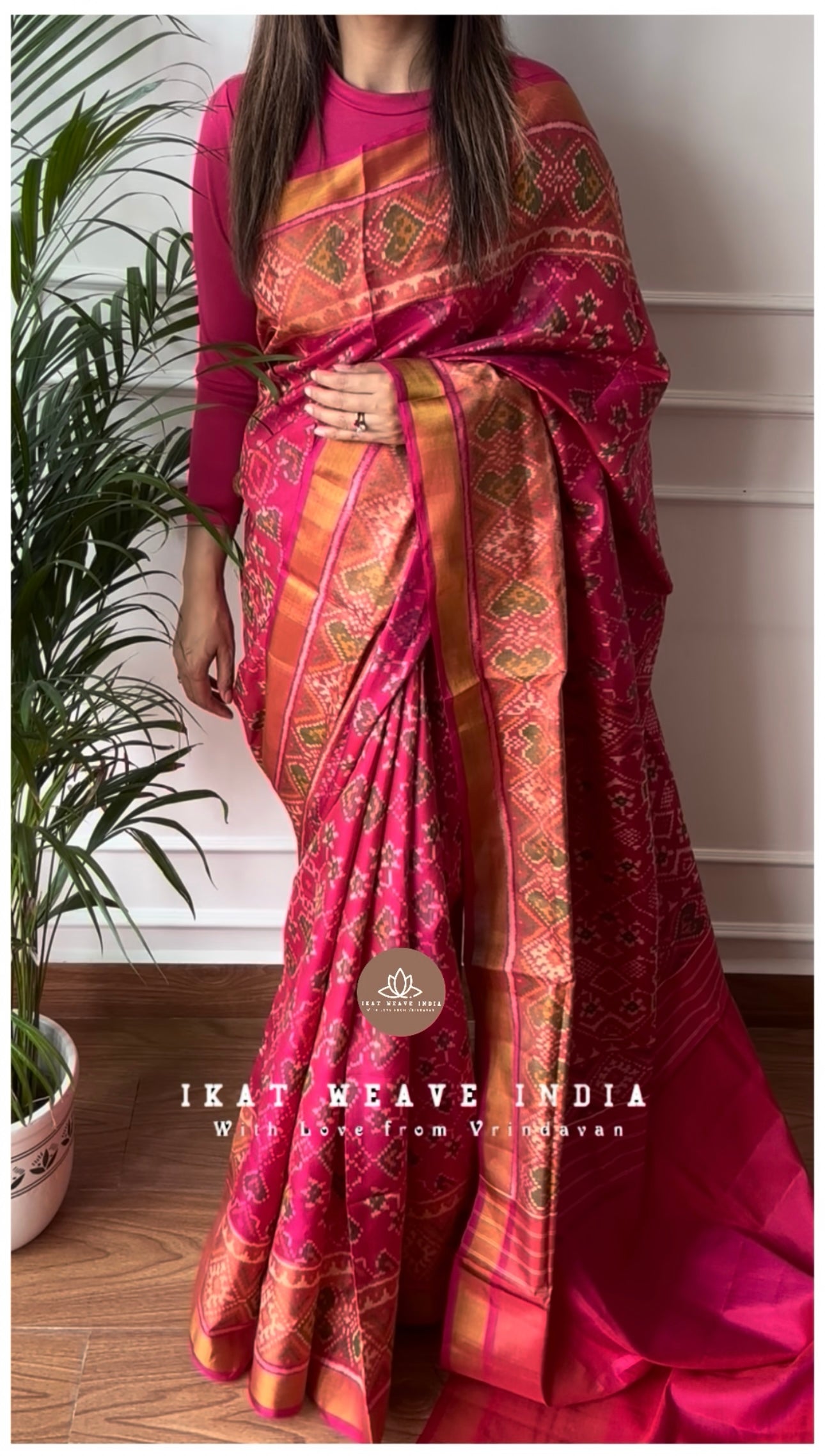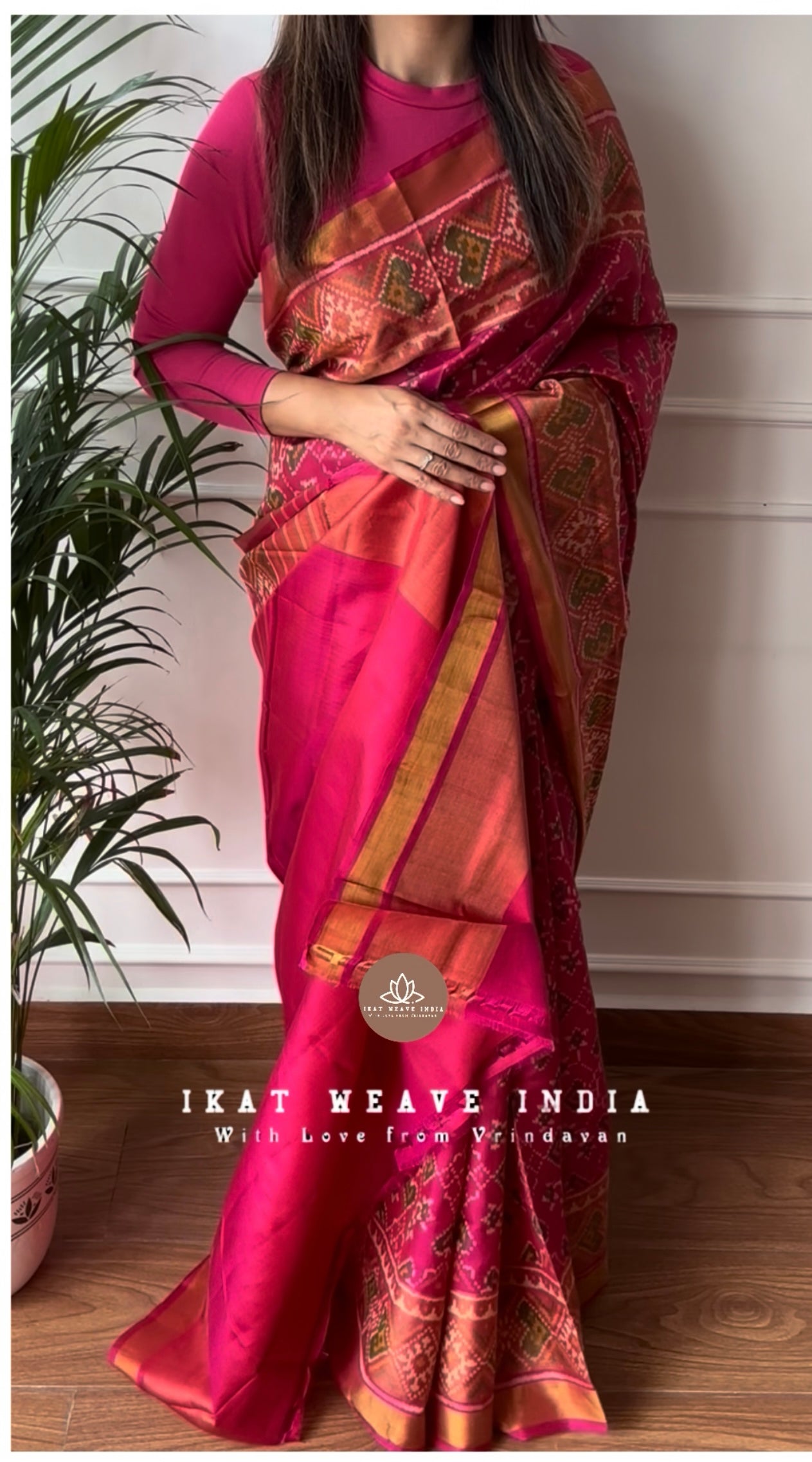 Exquisite gorgeous handwoven handloom pure silk Patola saree from Gujarat. A symbol of grace,Luxury and tradition.Saree comes with a running blouse piece.