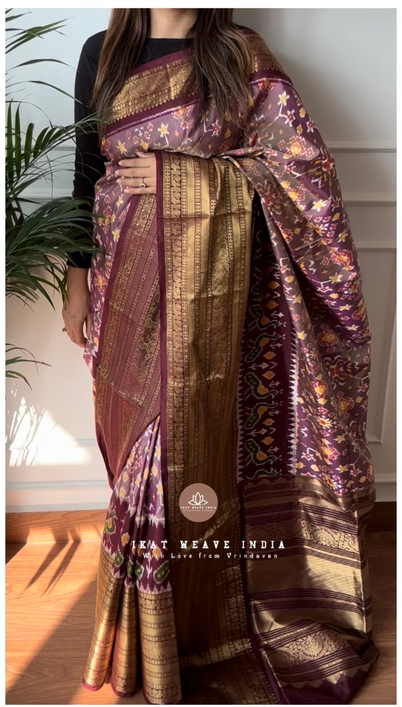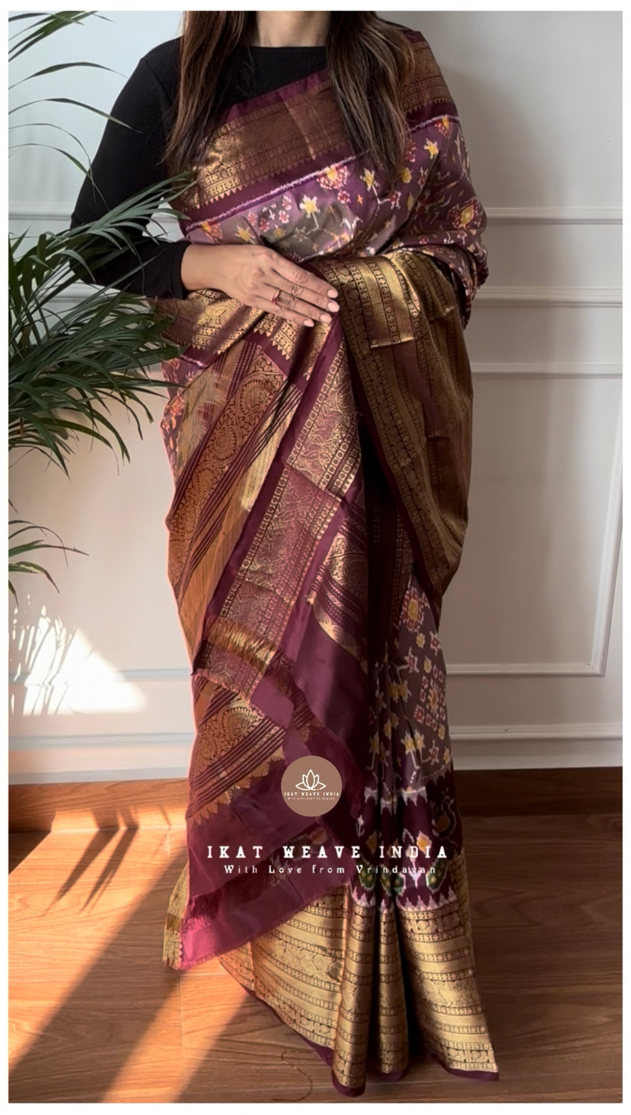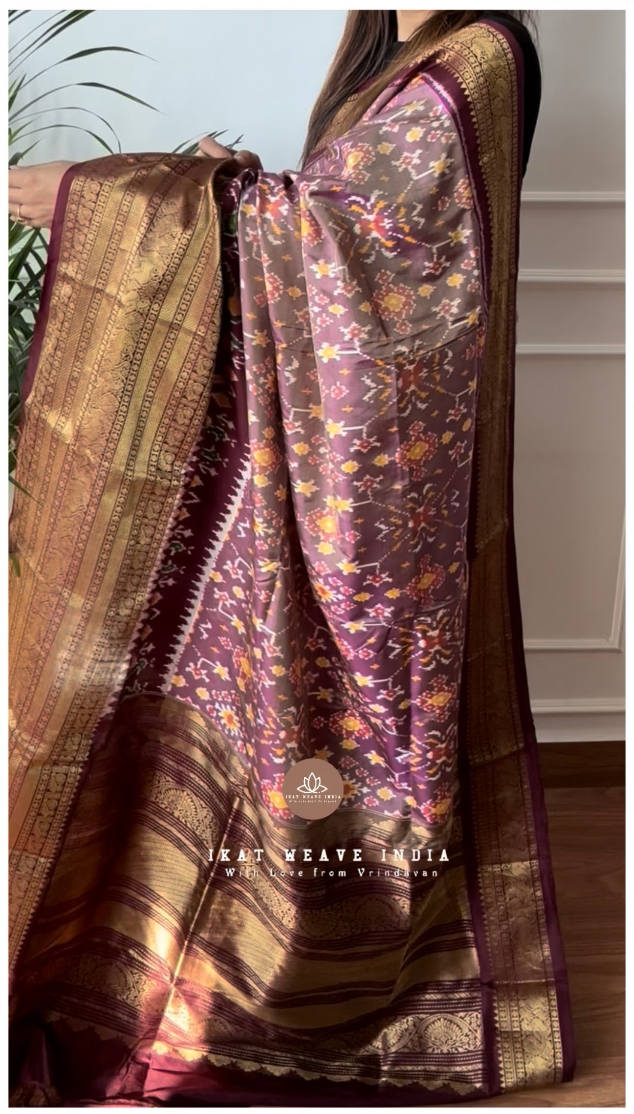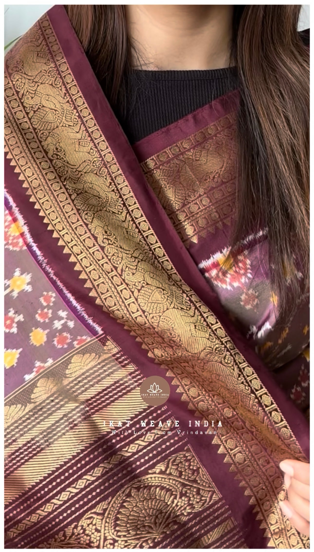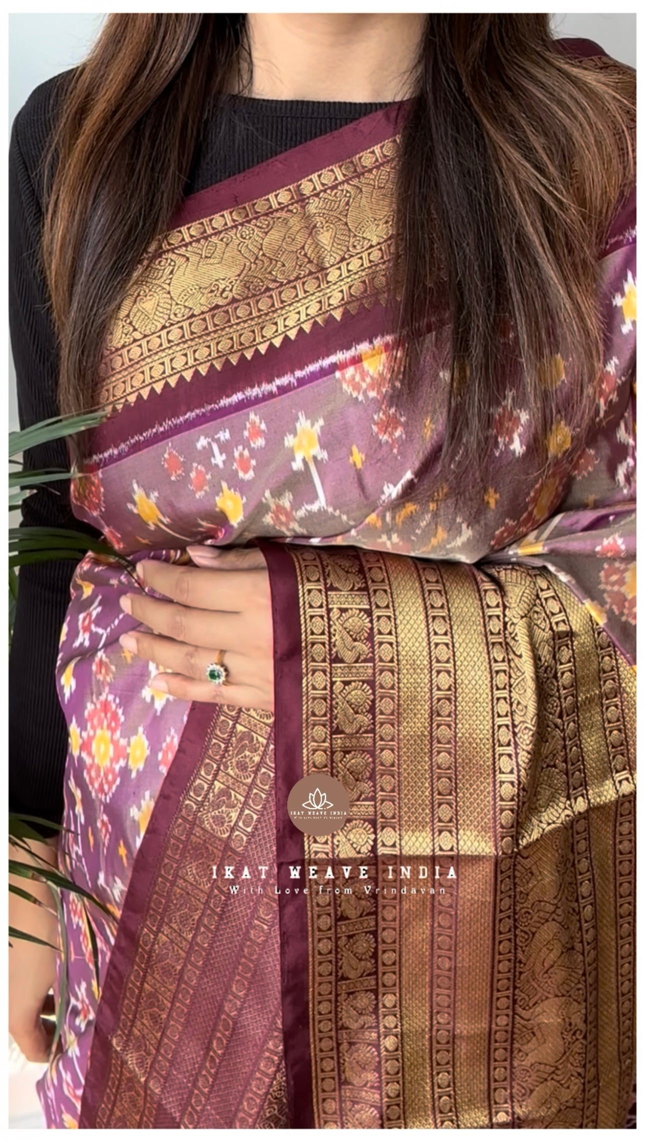 Premium, exclusive & Gorgeous handwoven pure silk Ikat saree with Kanchi Zari Border from Pochampally.A symbol of grace,Luxury and tradition.Saree comes with a running blouse piece.