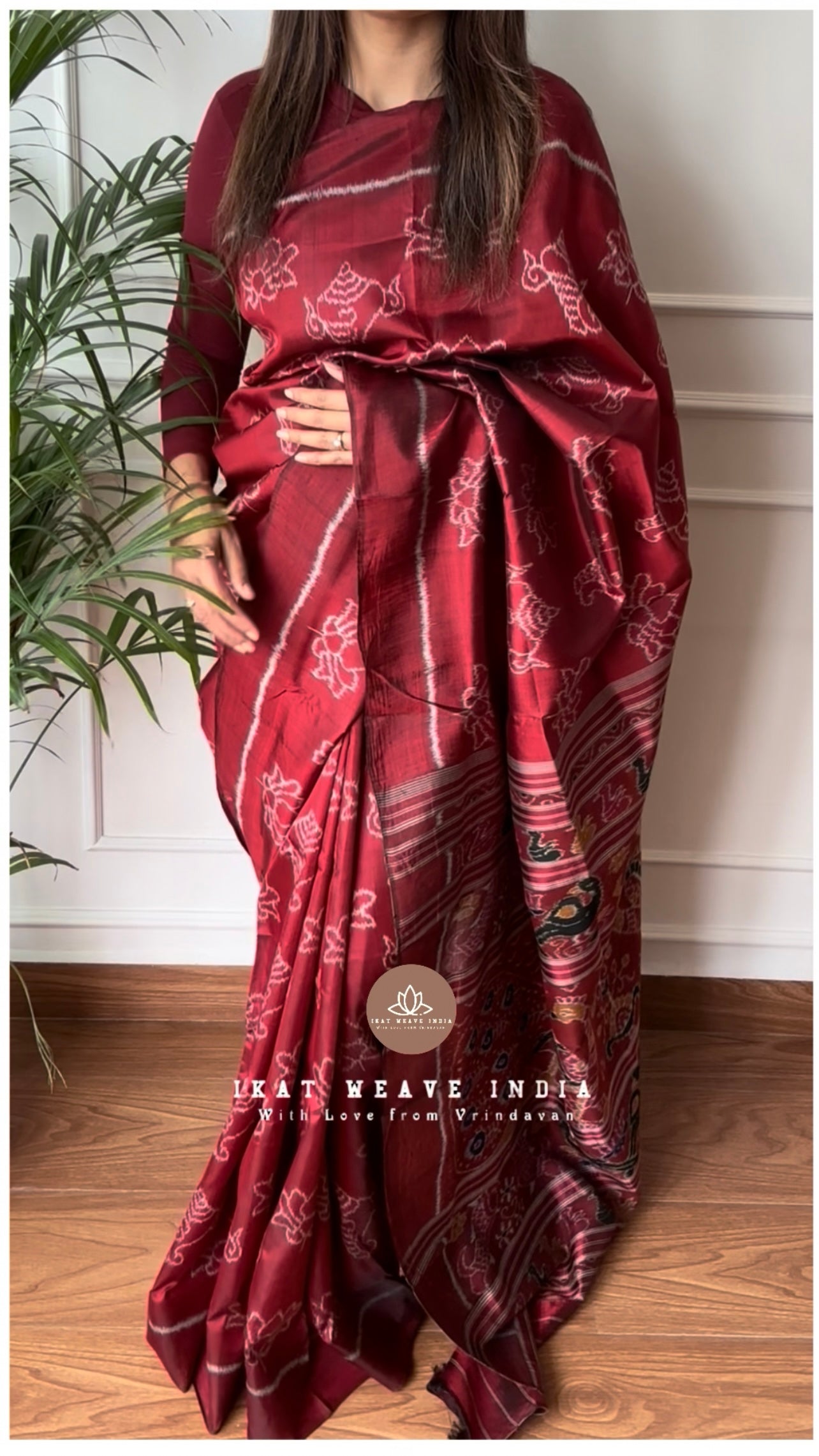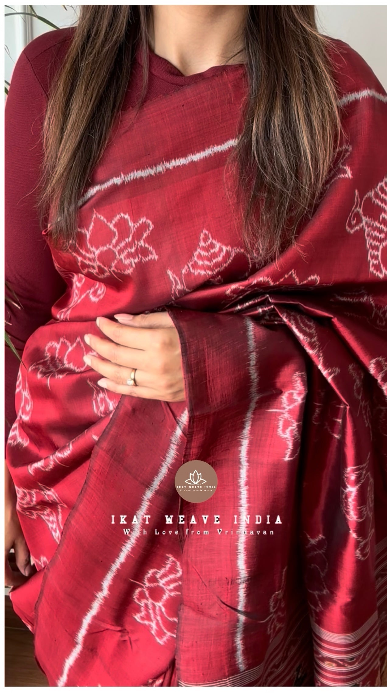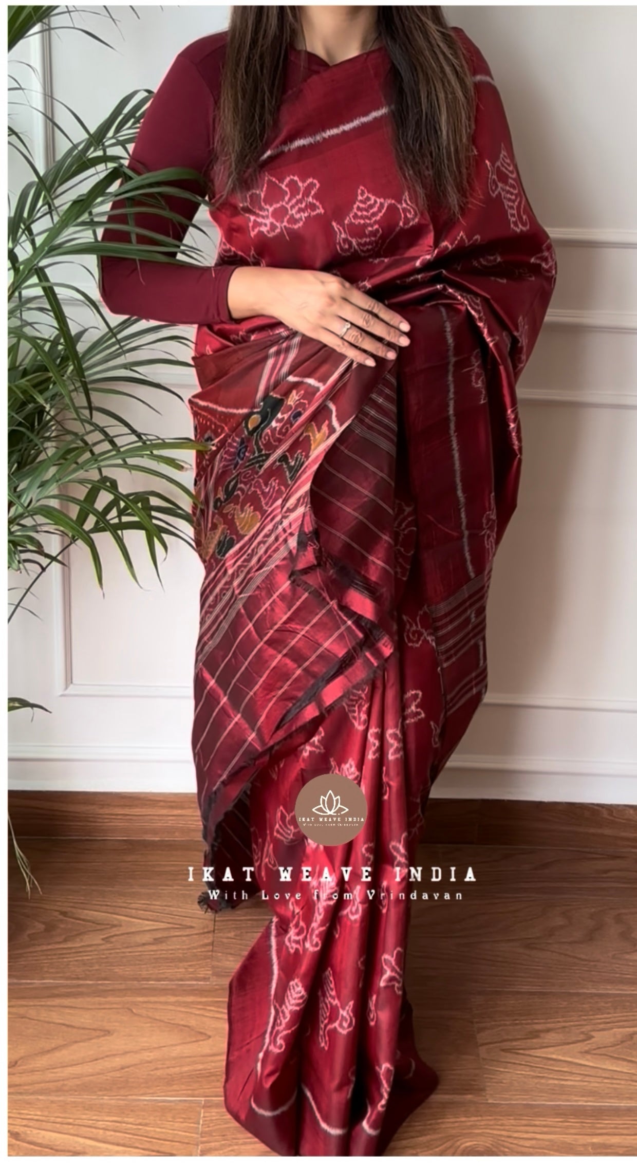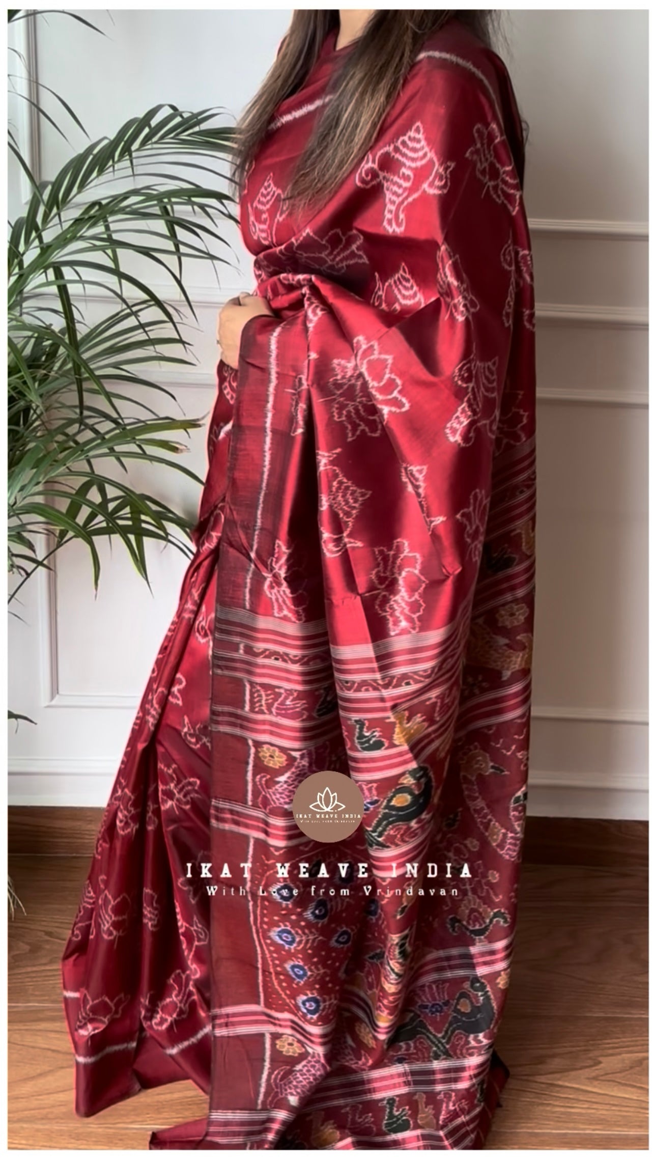Exquisite,breathable Light weighted Khandua silk Ikat saree from Odisha,intricate designs and exceptional craftsmanship makes the sarees a symbol of opulence,Grace & Luxury. Beautiful colour combination making the saree absolutely gorgeous.