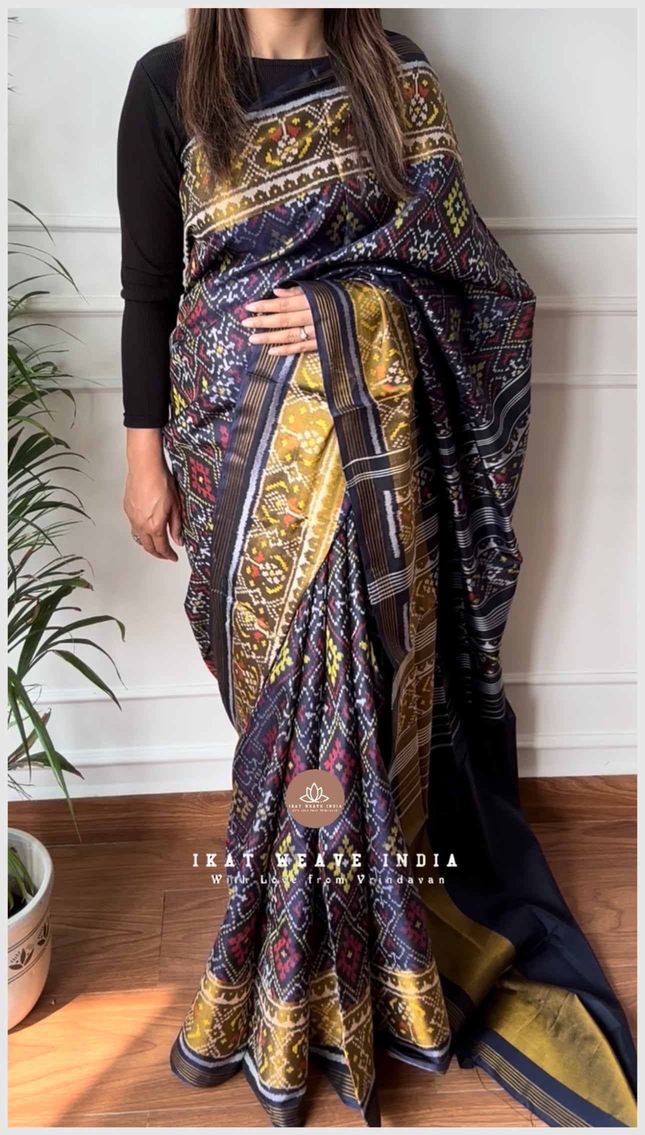 Luxurious & Exquisite handwoven pure silk Patola saree from Gujarat. A symbol of grace,Luxury and tradition.Saree comes with a running blouse piece.