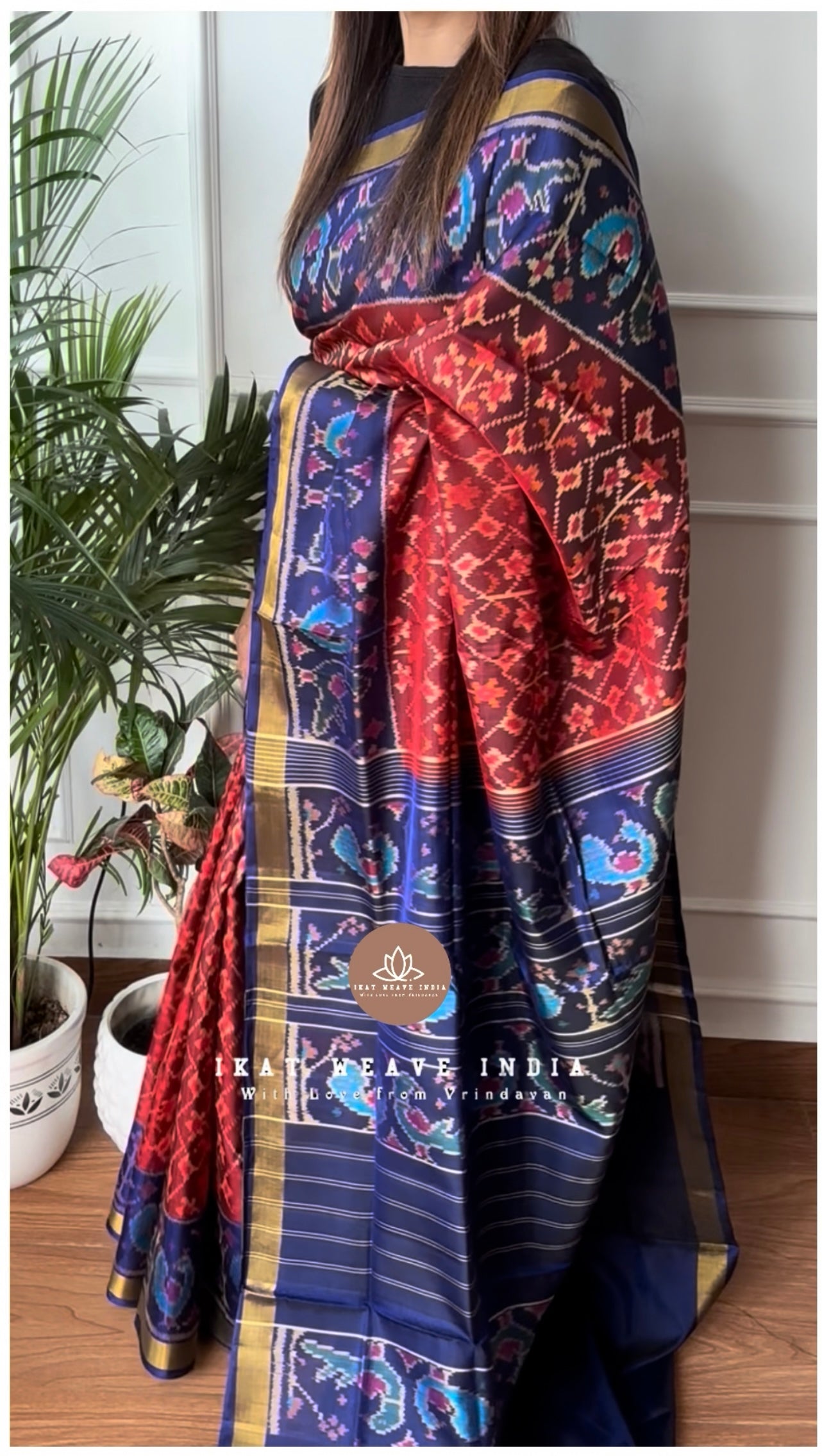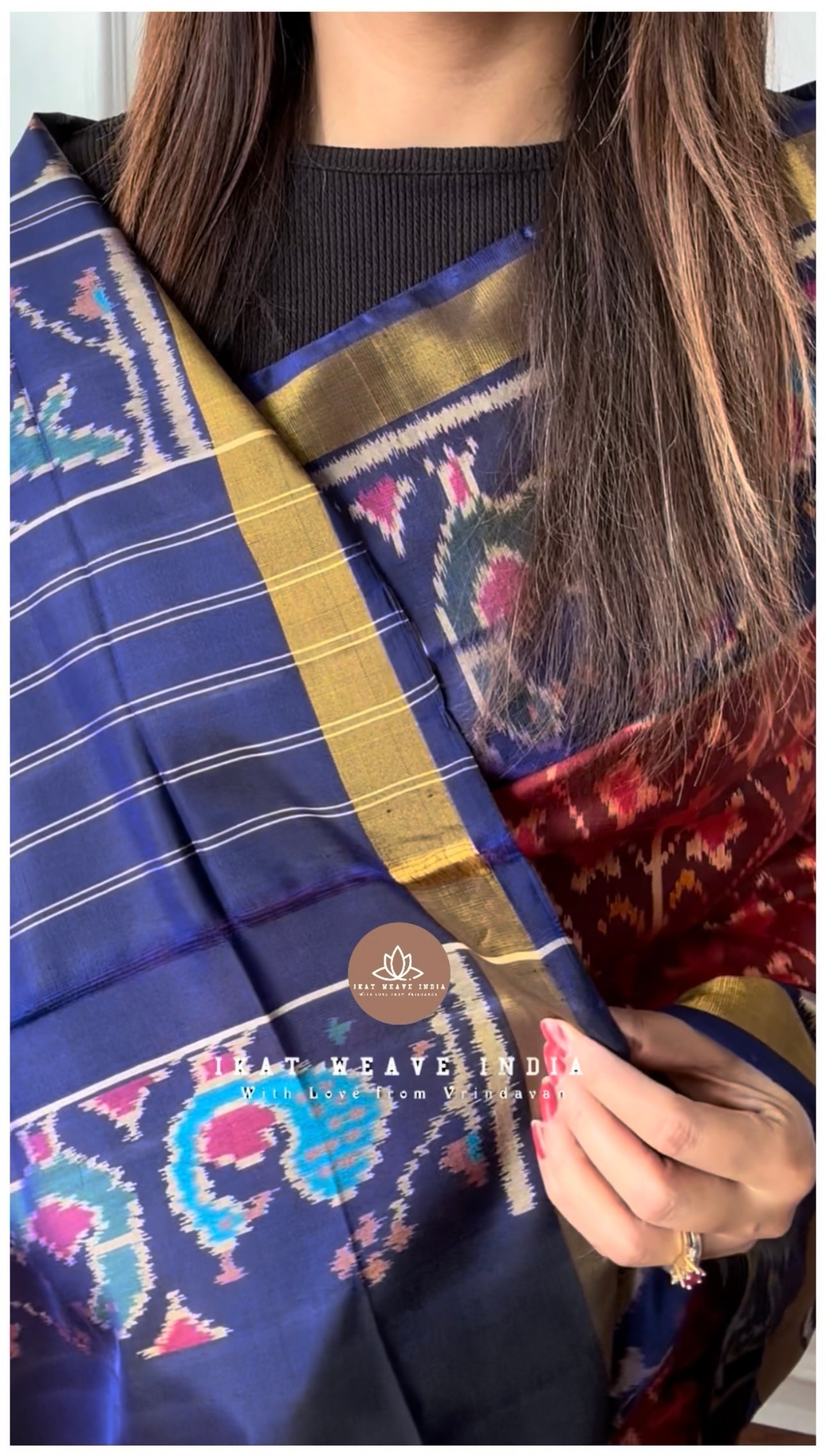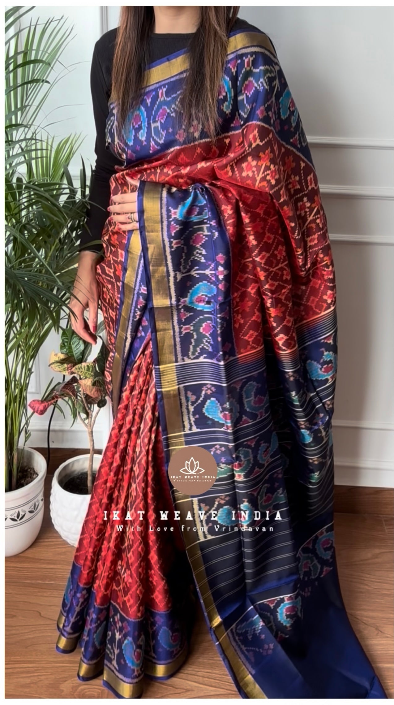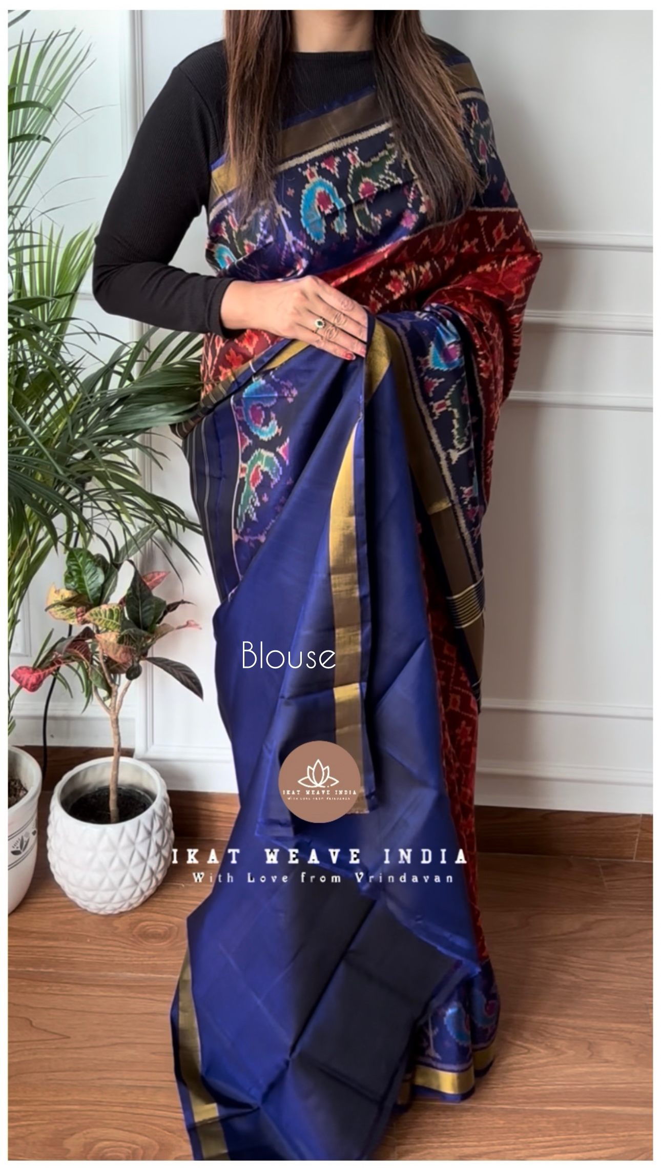 Exquisite & Luxurious handwoven handloom pure silk Patola saree from Gujarat. A symbol of grace,Luxury and tradition.Saree comes with a running blouse piece.