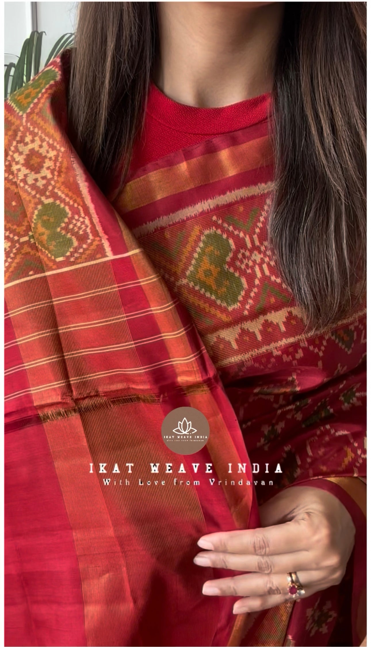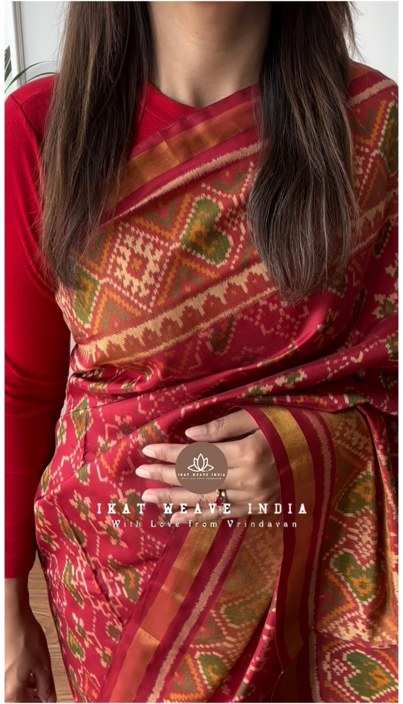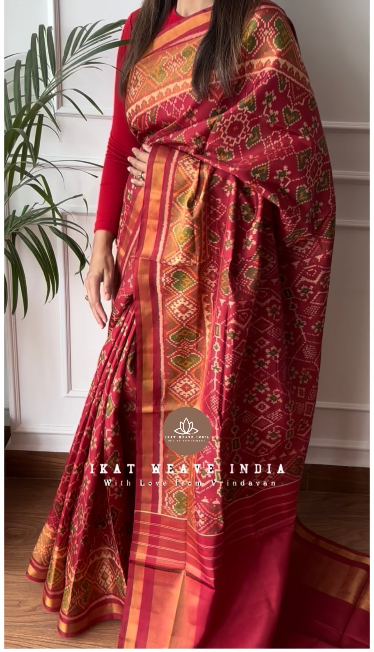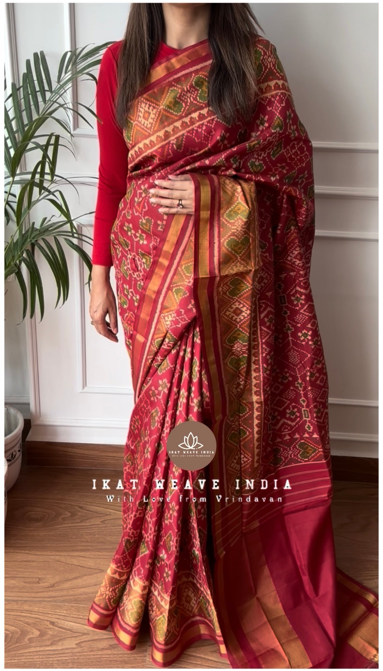 Exquisite gorgeous handwoven handloom pure silk Patola saree from Gujarat. A symbol of grace,Luxury and tradition.Saree comes with a running blouse piece.