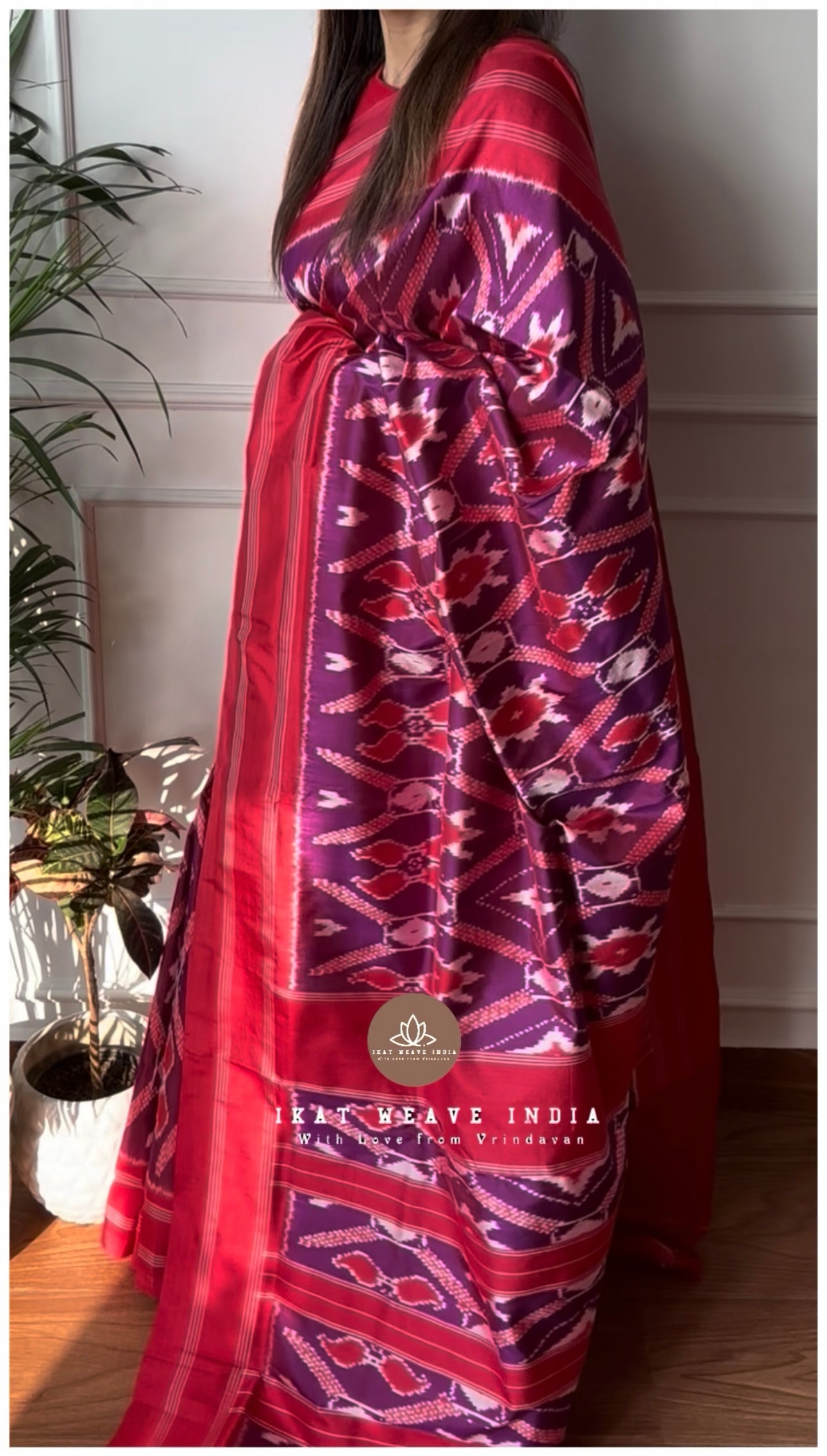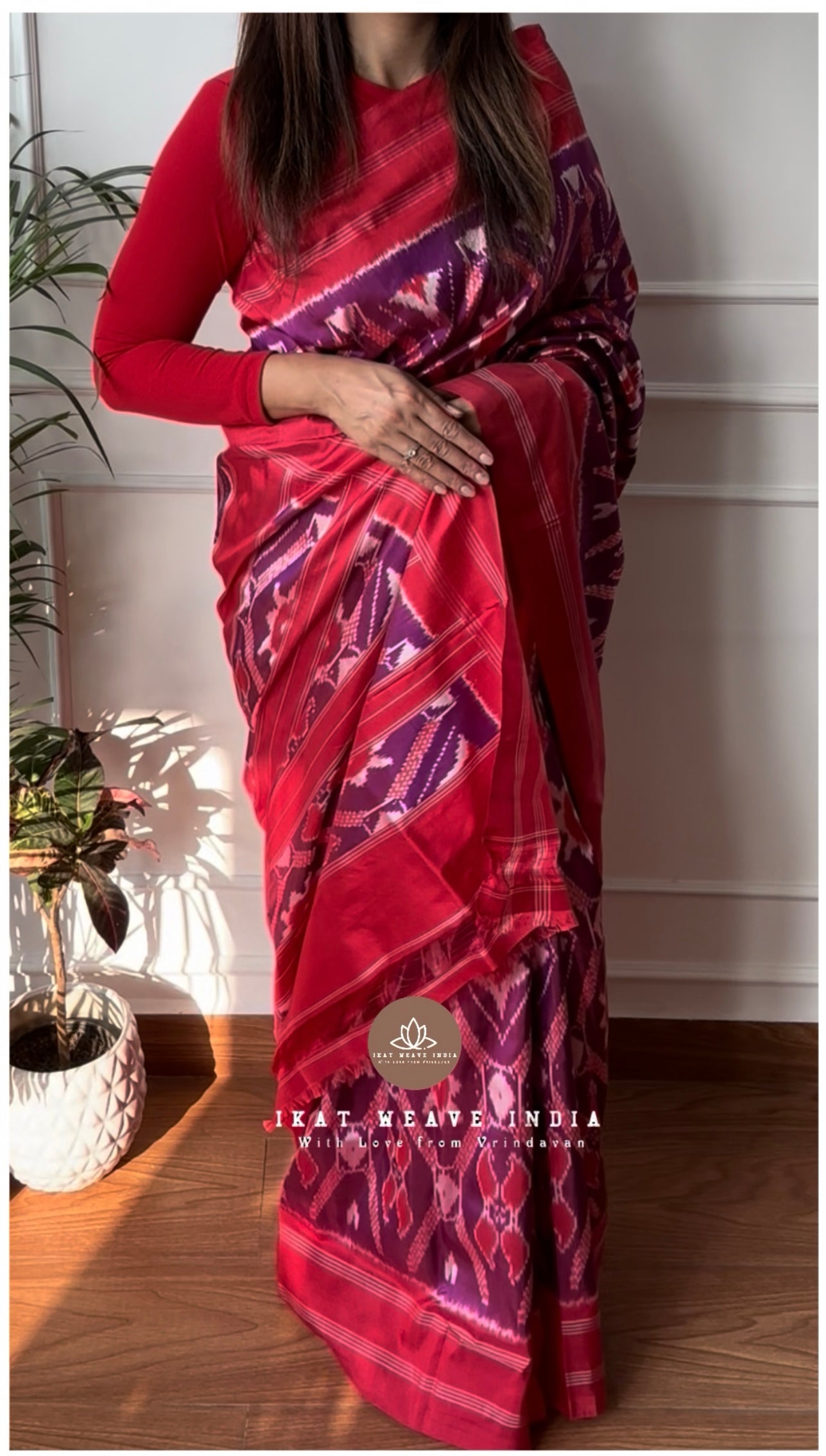 Luxurious & exquisite handwoven pure silk Ikat saree from Pochampally.A symbol of grace,Luxury and tradition.Saree comes with a running blouse piece.