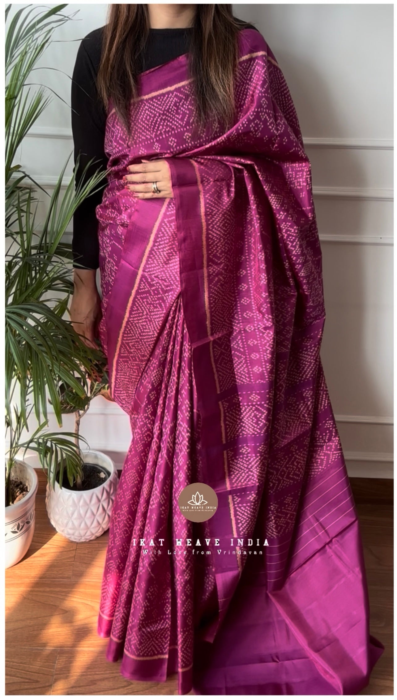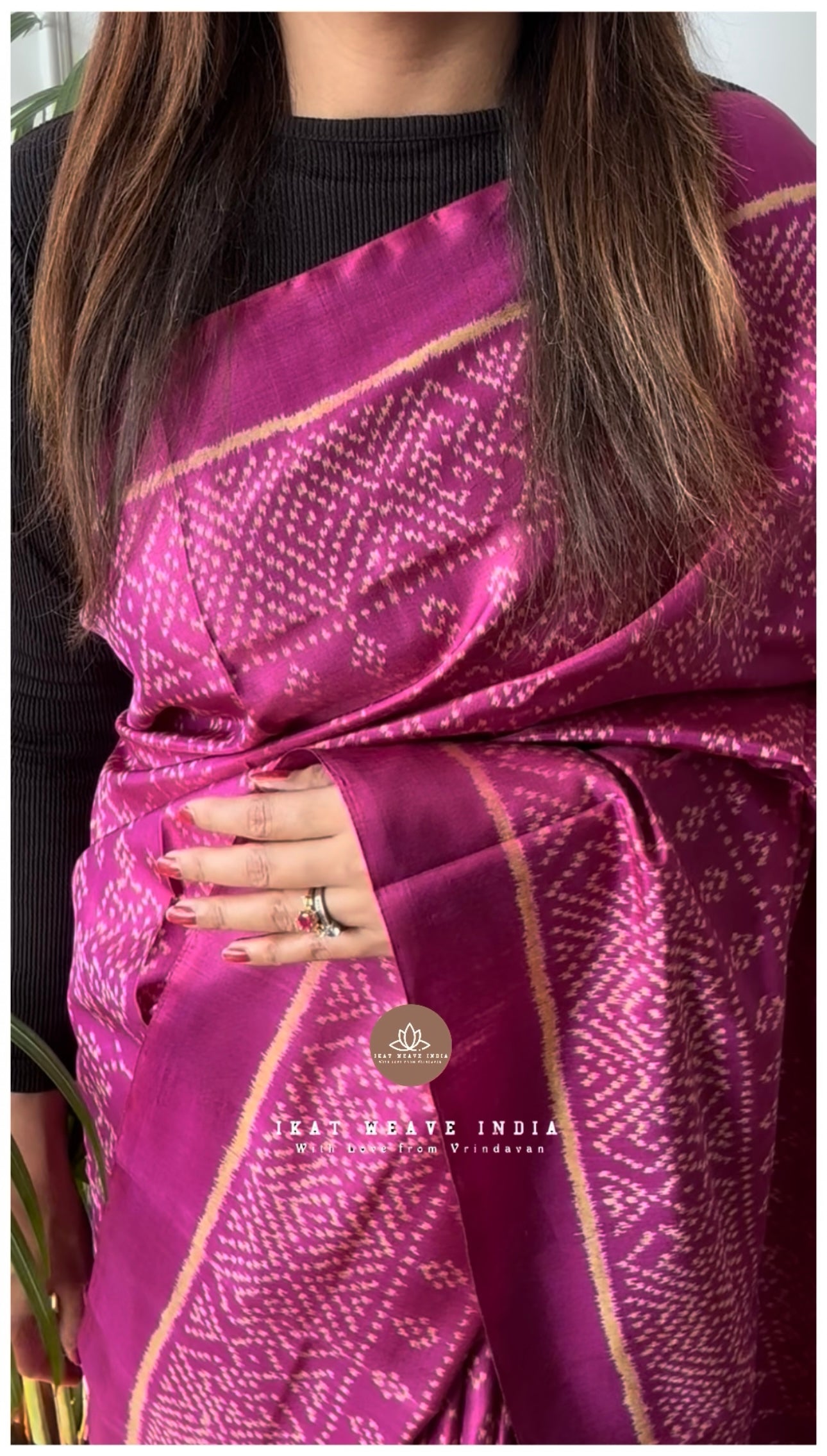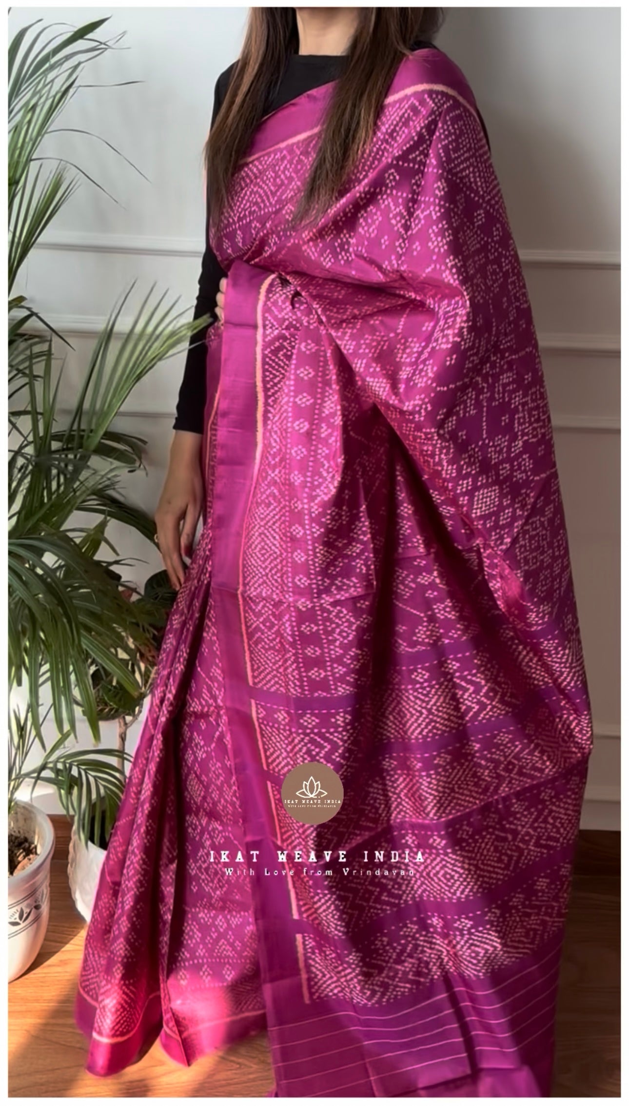 Exclusive & gorgeous handwoven handloom pure silk Patola saree from Gujarat. A symbol of grace,Luxury and tradition.Saree comes with a running blouse piece.