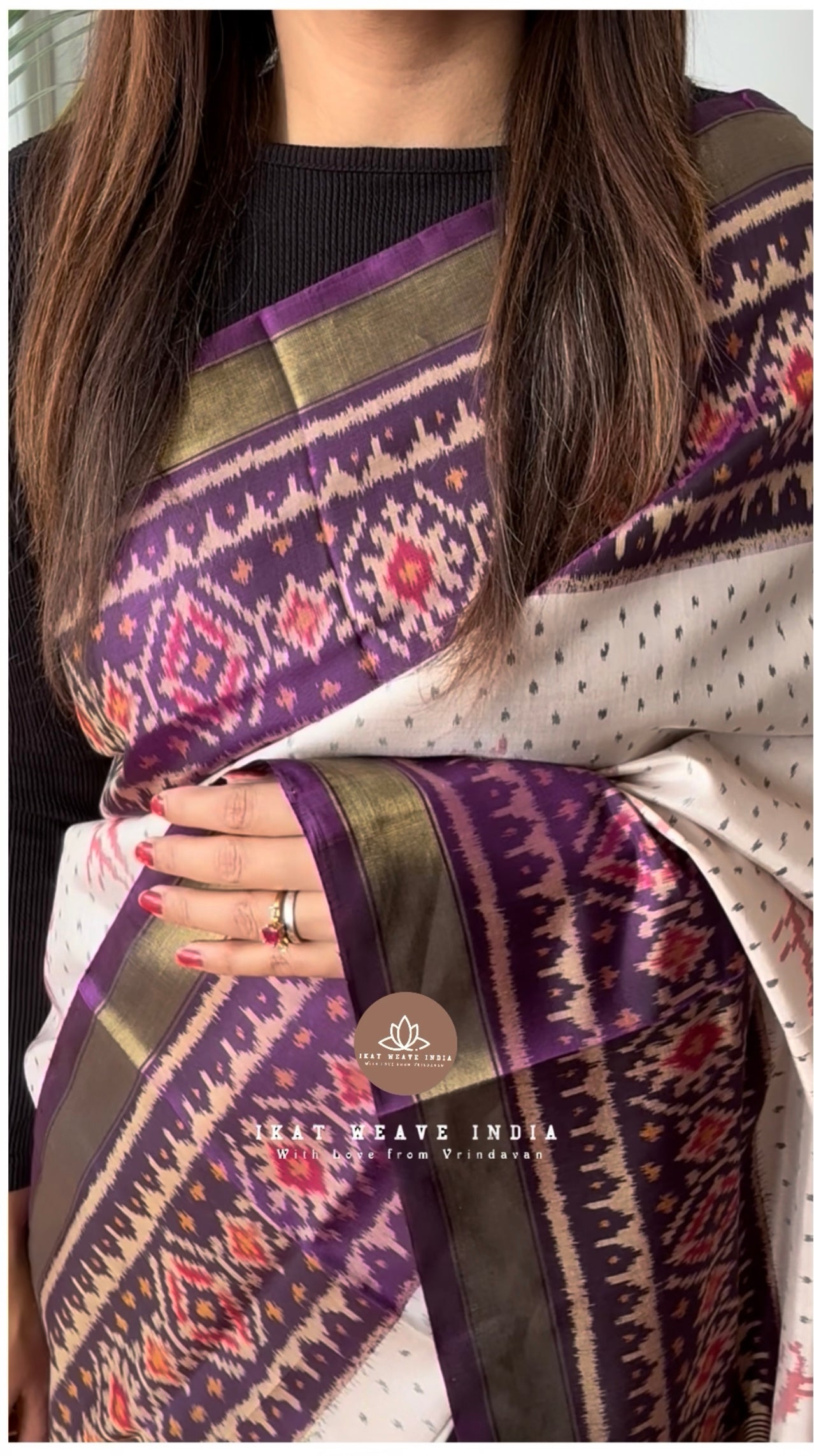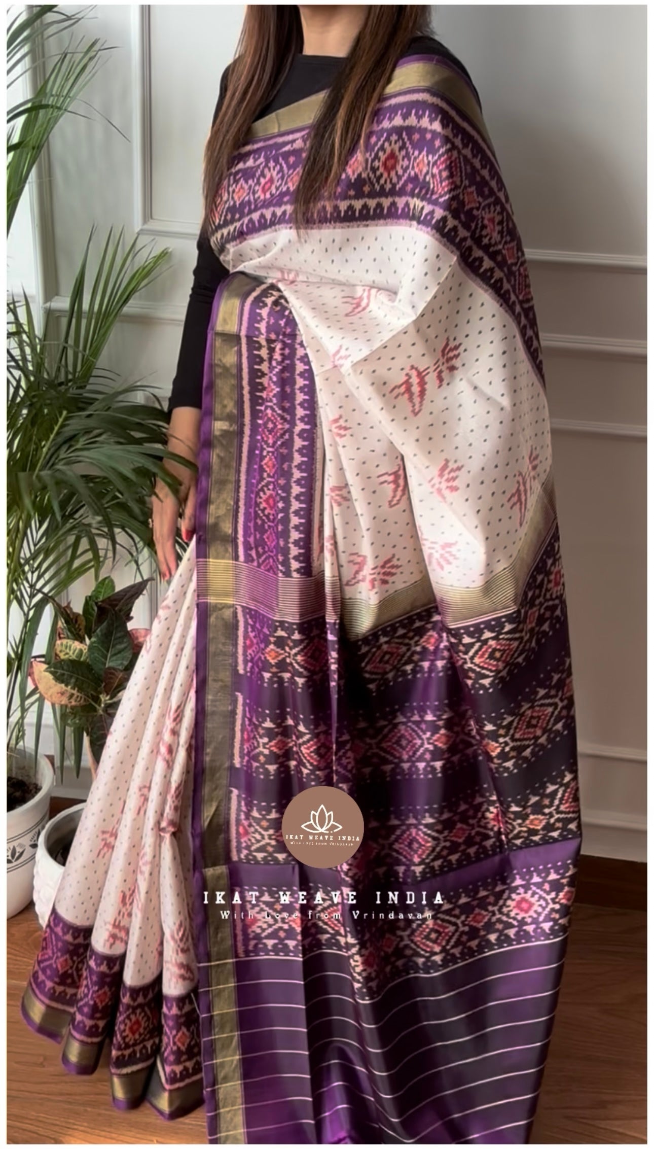 Exclusive & gorgeous handwoven handloom pure silk Patola saree from Gujarat. A symbol of grace,Luxury and tradition.Saree comes with a running blouse piece.